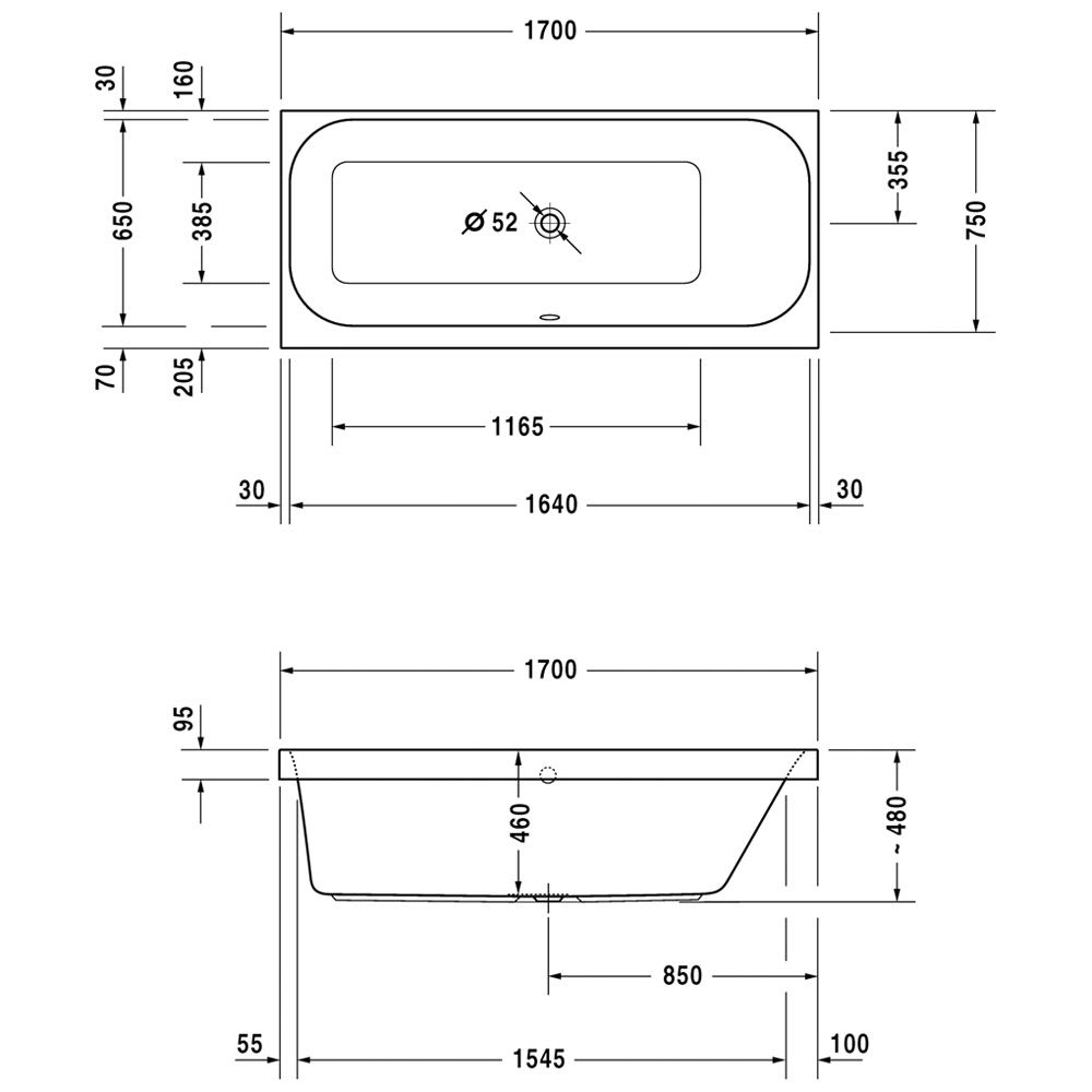 Duravit Happy D.2 Badewanne Rechteck 170 x 75 cm, Rückenschräge rechts