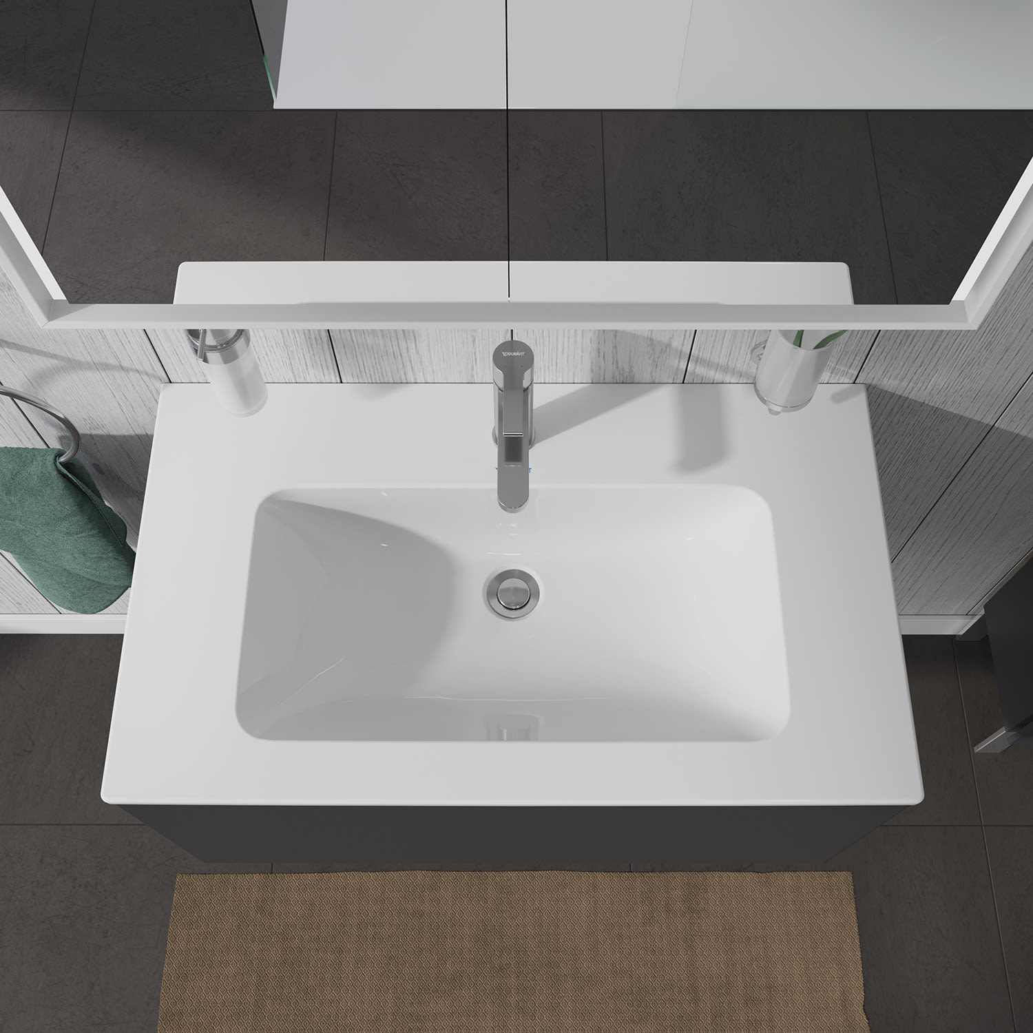 Optional sorgt die spezielle wasserabweisende WonderGliss Keramikbeschichtung für besonders leichte Reinigung. Das Waschbecken garantiert zudem maximale Flexibilität und individuellen Gestaltungsspielraum. Es eignet sich sowohl zur wandhängenden Einzelmontage, wahlweise kombinierbar mit einer Stand- oder Halbsäule, lässt sich aber ebenso gelungen mit einem passenden Unterschrank aus verschiedensten Duravit Möbelserien kombinieren.