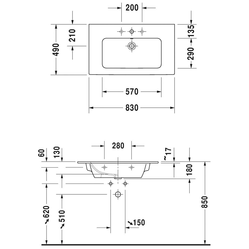 Duravit ME by Starck Möbelwaschtisch 83 cm mit 1 Hahnloch