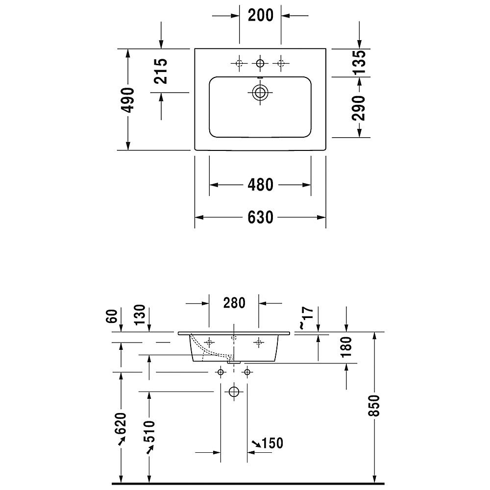 Duravit ME by Starck Möbelwaschtisch 63 cm mit 1 Hahnloch