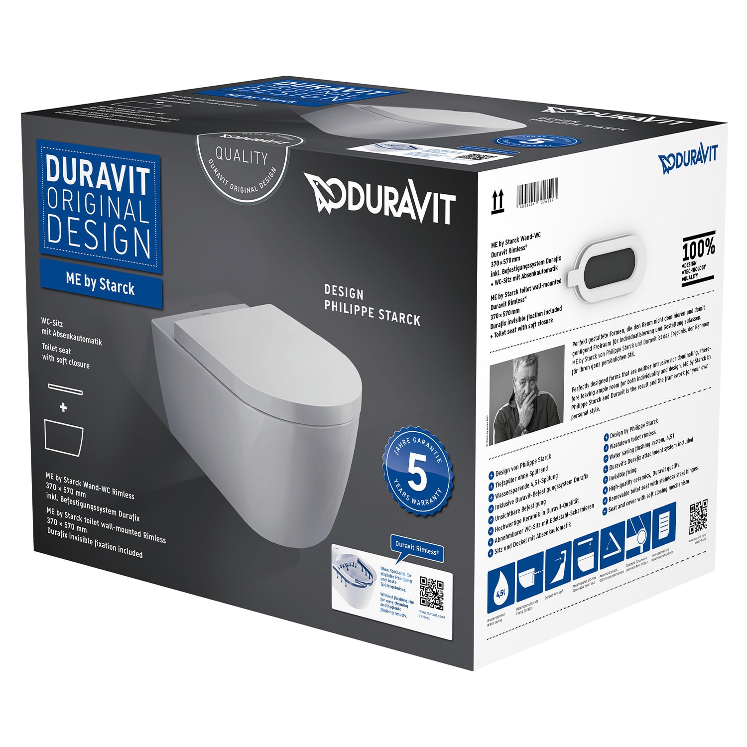 - Offene Spülrandgestaltung Duravit Rimless® mit dynamischer Wasserführung für perfekte Spülergebnisse und ausgezeichneter Spülperformance