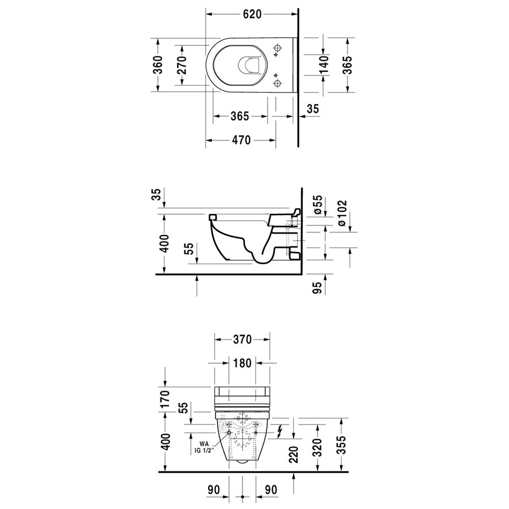 Duravit Starck 3 Wand-WC für SensoWash mit verdeckten Anschlüssen