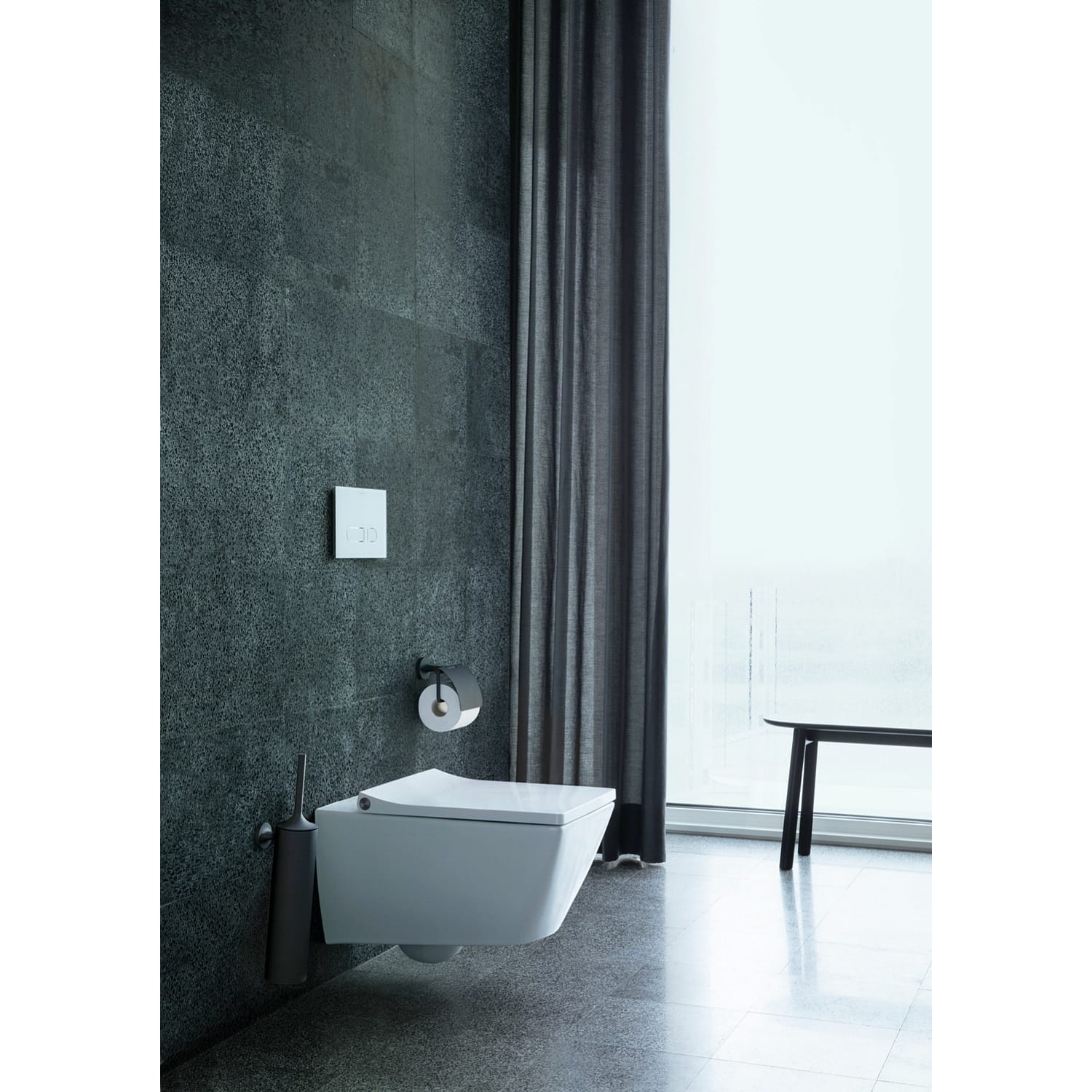 Form und Funktion vereinen sich auf ikonische Weise in der Duravit Starck T Bürstengarnitur: ein exklusives Bad-Accessoire aus der Feder des Star-Designers Philippe Starck, dessen Bürste mit stilvollem Metallgriff von einem wohlproportionierten, zylindrischen Metallbehältnis aufgenommen wird. Die Garnitur wird mittels eines verdeckten Befestigungssystems elegant und platzsparend an der Wand montiert. Dabei kann die WC-Bürstengarnitur sowohl an die Wand geschraubt als auch geklebt werden. Alternativ steht auch eine bodenstehende Variante zur Verfügung, bei der die Wandmontage komplett entfällt. Die serientypische Designidee eines verästelten Baumes findet sich im weich geformten Griffansatz der Bürste sowie dem sanft geschwungenen Übergang zur rund gestalteten Bürstenhalterung wieder. Nachhaltiges Extra der hochwertigen Ausführung: der Bürstenkopf ist abnehmbar und kann bei Bedarf ausgetauscht werden.