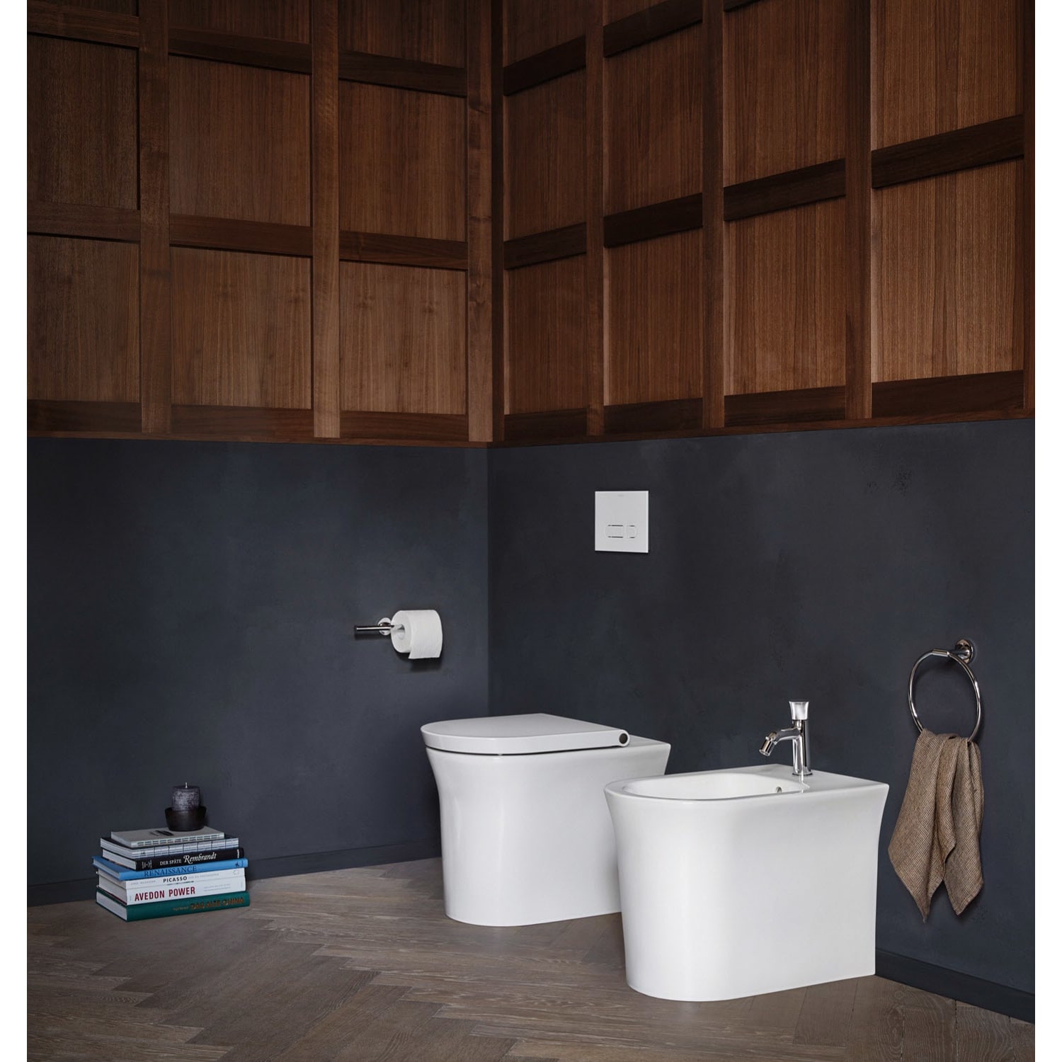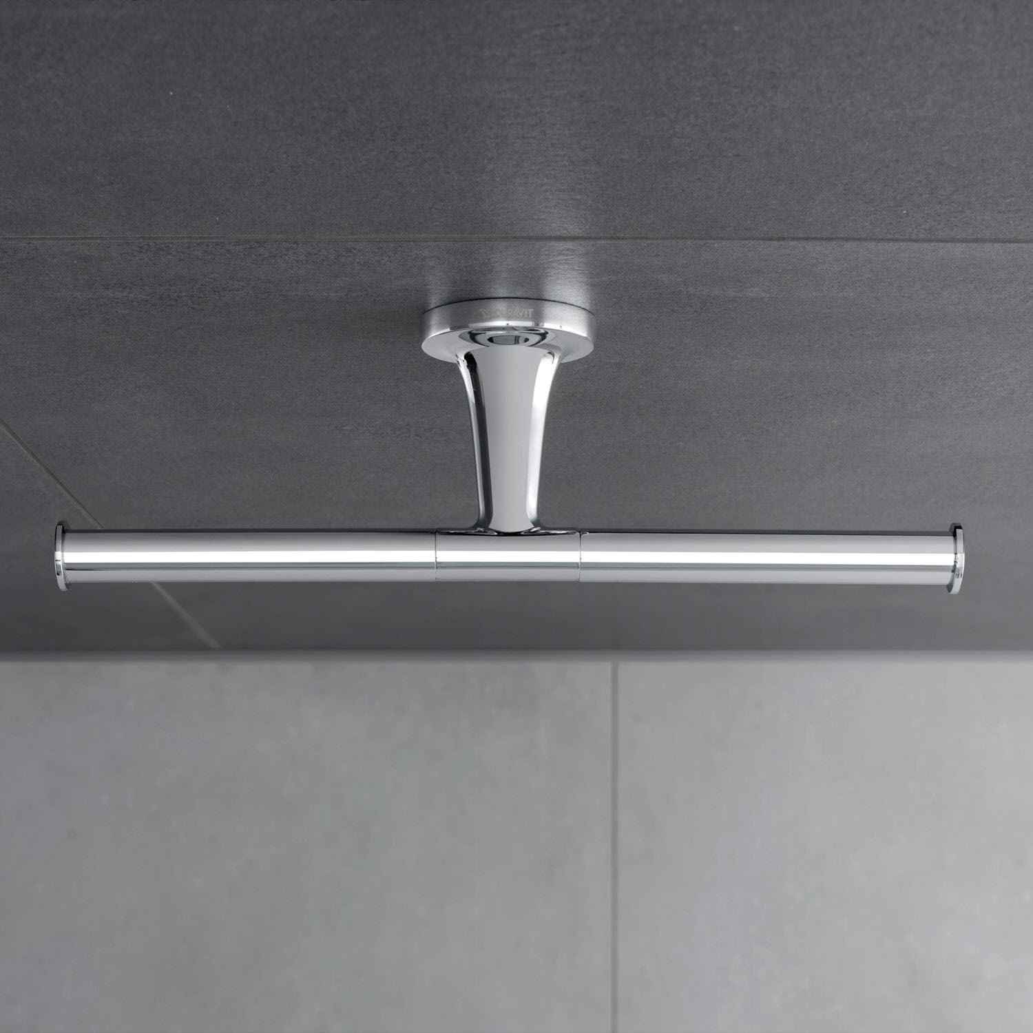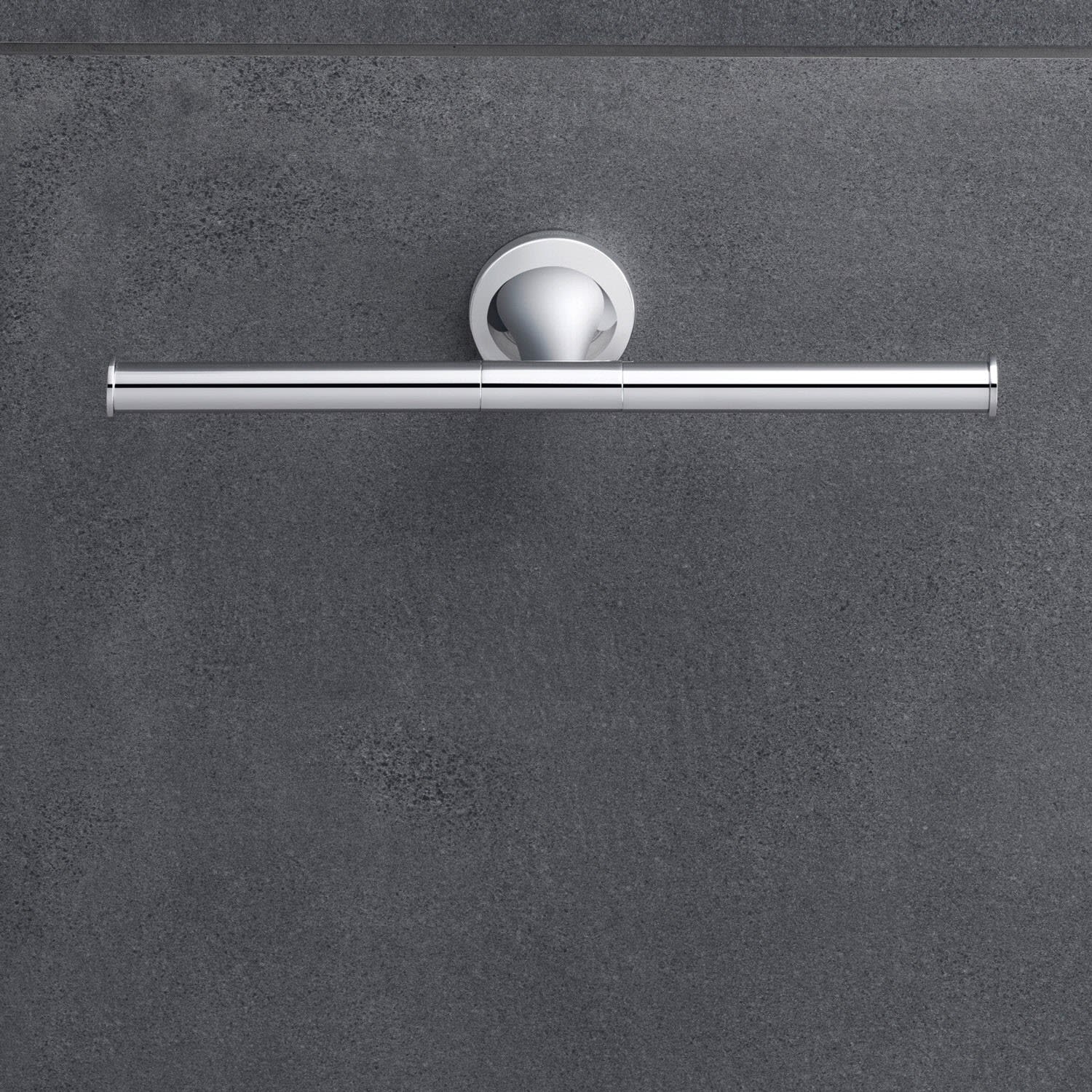 Form und Funktion vereinen sich zu einem ikonischen Accessoire: dem wandhängenden Duravit Starck T Papierrollenhalter. Philippe Starcks Designidee einer T-förmigen Verästelung mit organischem Charakter, die aus einer runden, weich geformten Basis erwächst, zeigt sich gelungen in der formschönen Symmetrie des Papierrollenhalters, welcher gleich zwei Papierrollen griffbereit hält. Dank des verdeckten Befestigungssystems wird die wohlproportionierte Formgebung durch nichts beeinträchtigt. Zusätzlich bietet es Flexibilität bei der Montage, da der Papierrollenhalter sowohl an die Wand geschraubt als auch geklebt werden kann. Ein Design-Accessoire fürs Bad, dessen hochwertige Verarbeitung in verschiedenen Oberflächen alle Blicke auf sich zieht und perfekt mit den weiteren Accessoires aus der Starck T Designlinie harmoniert.