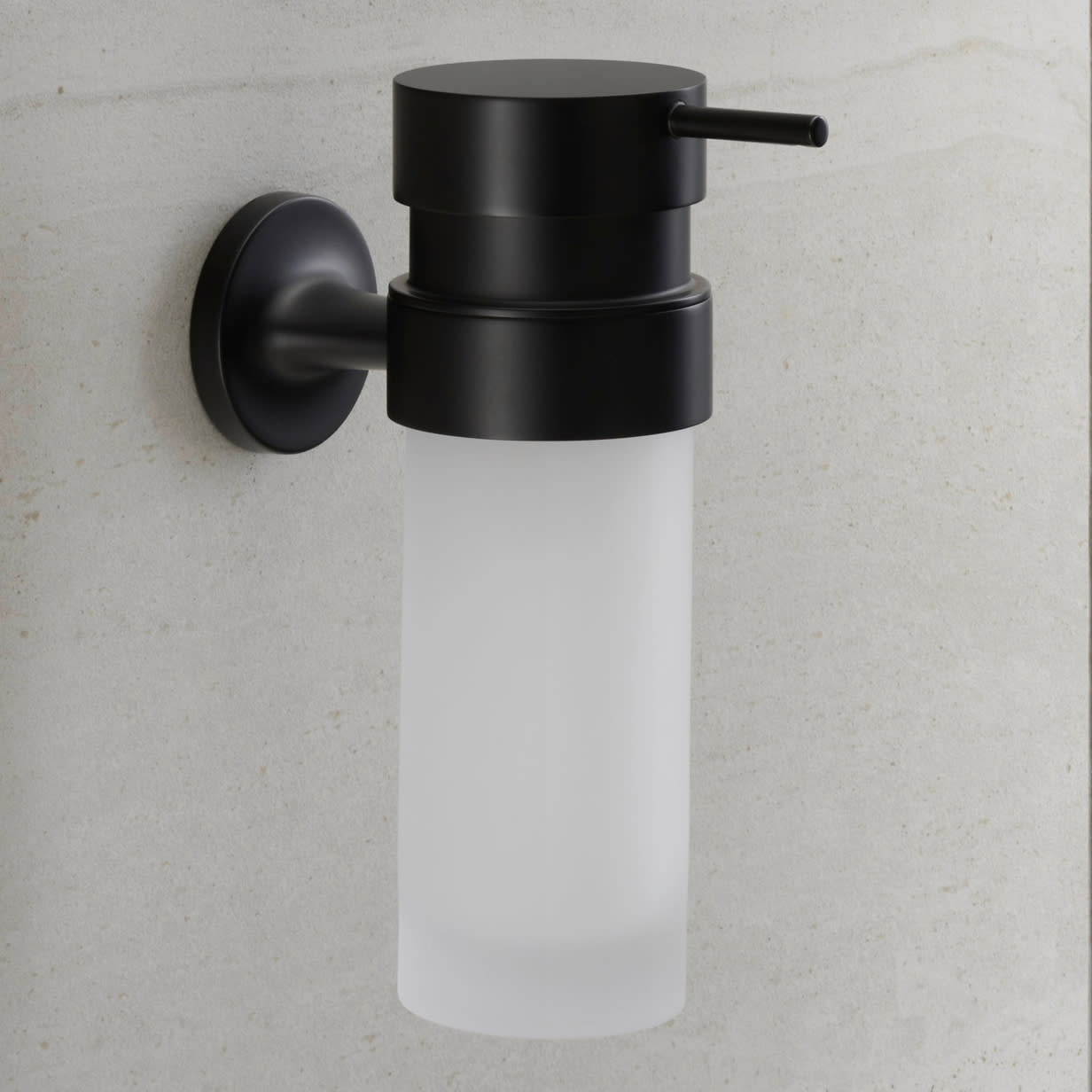 Der wandhängende Duravit Starck T Seifenspender begeistert mit ikonischer Formgebung und funktionaler Strenge. Philippe Starcks serientypisches Design, das organisch gestaltete Übergänge mit stringenter Funktionalität verbindet und in jedem Accessoire ein stilisiertes „T“ erkennbar macht, überzeugt bei diesem ästhetischen Badelement mit spannenden Materialkontrasten. Die weich geformte, verdeckt befestigte Wandhalterung aus Metall verlängert sich zu einem edel-mattierten Glaszylinder mit Metall-Pumpspender – eine platzsparende Ergänzung für Ihren Waschtisch und ein elegantes Statement für jedes Design-Bad. Der hochwertig verarbeitete Seifenspender kann sowohl an die Wand geschraubt als auch geklebt werden und lässt sich ideal mit weiteren Badaccessoires aus der Starck T Designlinie kombinieren.