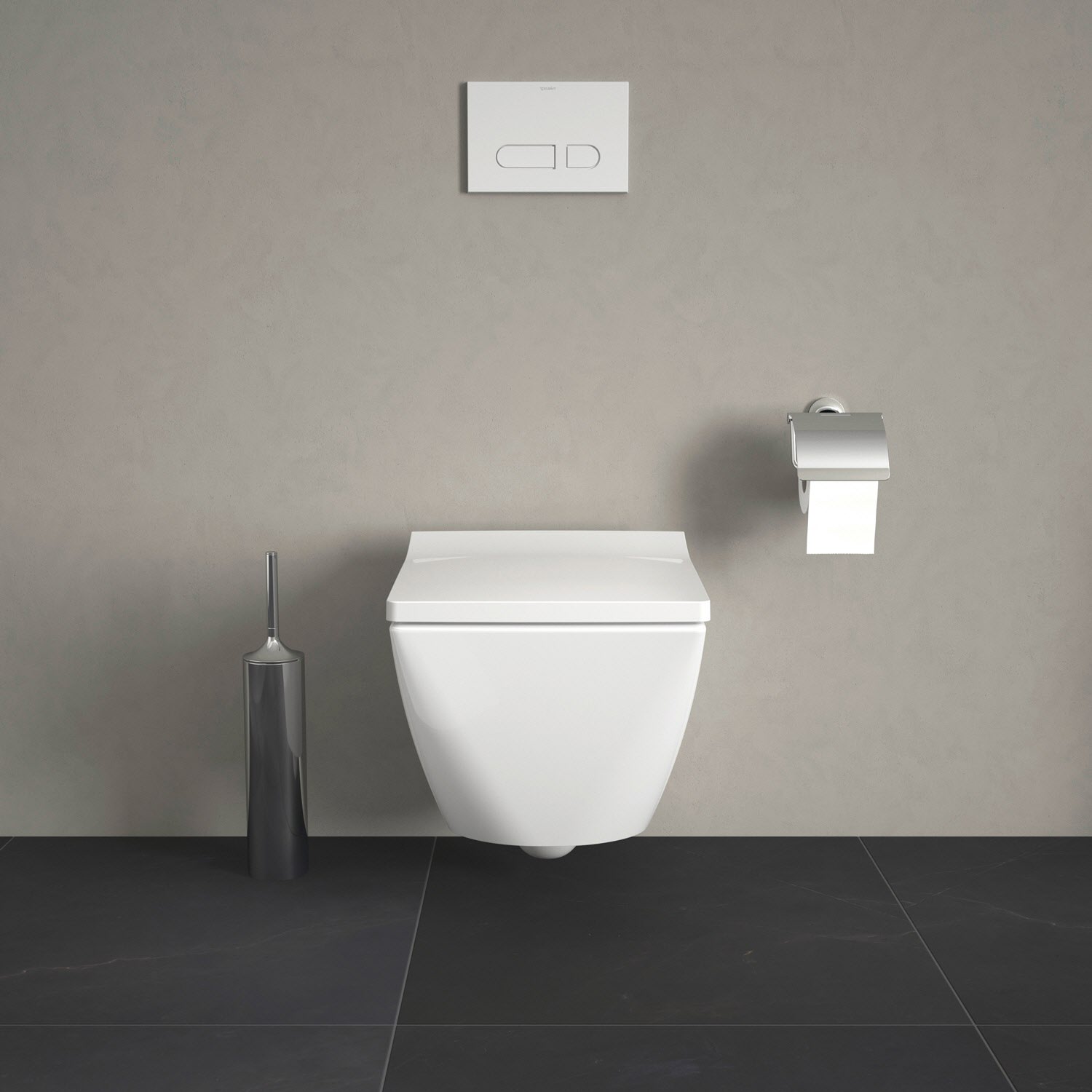- offener Spülrand Duravit Rimless® mit dynamischer Wasserführung: hygienisch einwandfreie Spülergebnisse auch bei kleinen Wassermengen