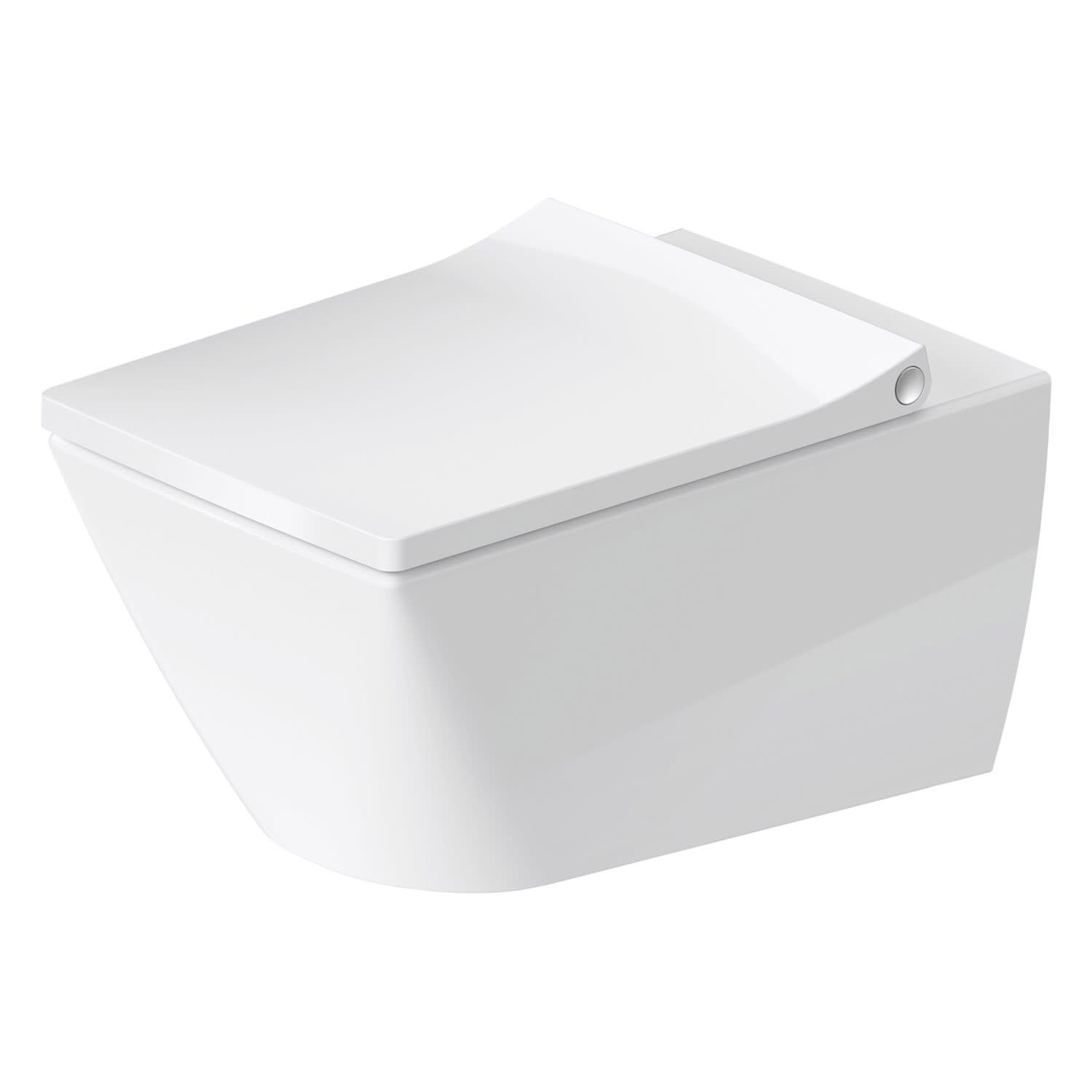 Zeitgemäßes Design fusioniert mit progressiver Komfort-Technologie zu einem stilvollen Badobjekt: mit diesem Credo überzeugt das außergewöhnliche Duravit Wand-Tiefspül-WC aus der Designlinie Viu by sieger design. Seine skulpturale Gestaltung mit geometrischen Konturen und geschwungenen Linien wird vom dazu passenden Duravit WC-Sitz perfekt ergänzt (bitte separat bestellen). Dank der innovativen Duravit Rimless® Spültechnologie, einer spülrandlosen Bauweise mit dynamischer Wasserführung, haben Schmutz und Bakterien unter dem Spülrand keine Chance. Selbst mit kleinen Spülwassermengen von nur 4,5 Litern werden hygienisch einwandfreie Spülergebnisse erzielt und ein sparsamer, effizienter Wasserverbrauch gewährleistet. Die hochwertige, langlebige Sanitärkeramik zeichnet sich durch ihre kratzresistente und reinigungsfreundliche Oberfläche aus. Mit der im Lieferumfang enthaltenen, verdeckten Durafix-Wandbefestigung gelingt eine schnelle und unsichtbare Installation für eine elegante, puristische Optik.