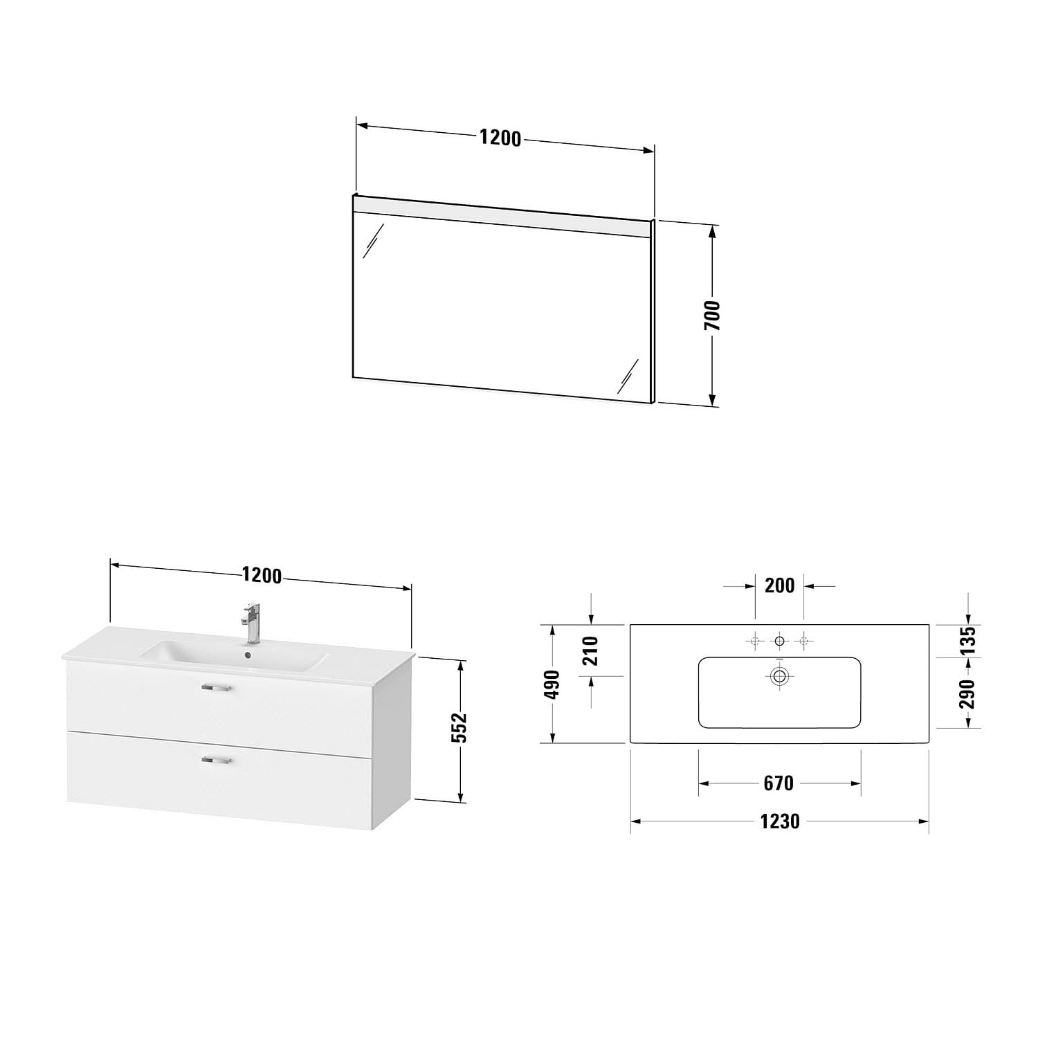 Duravit XBase MöbelSet 123 cm, mit Spiegel