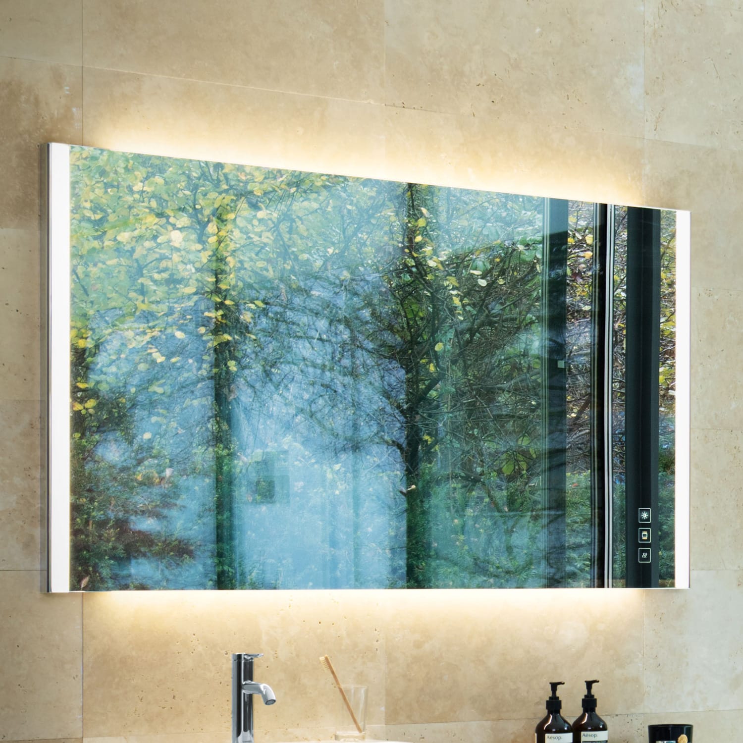 - inkl. Spiegelheizung 2x 37 W (40 x 40 cm, 1x links, 1x rechts) mit automatischer Abschaltung