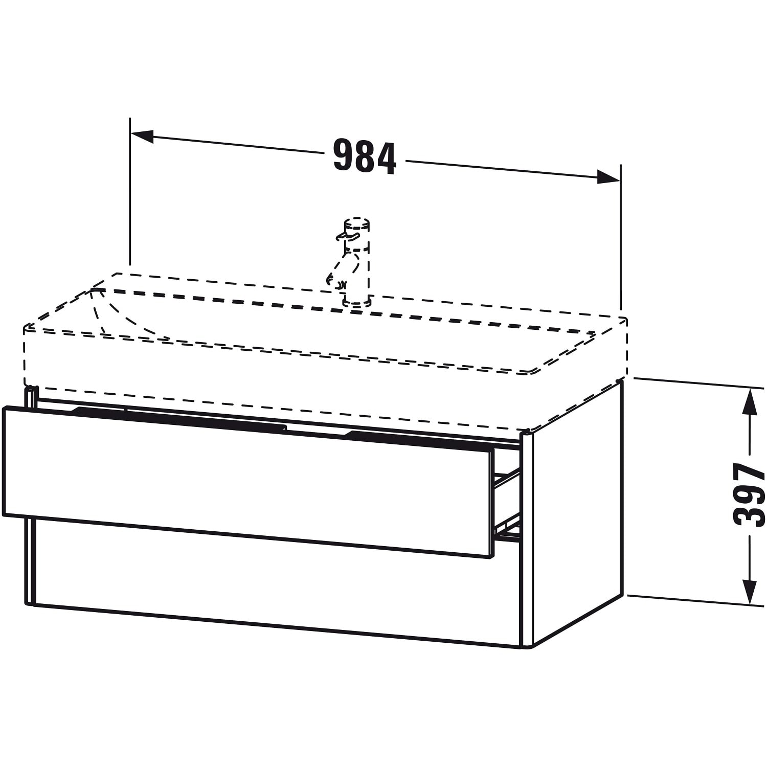 Duravit XSquare Waschtischunterbau wandhängend 98,4 cm, mit 2 Schubkästen