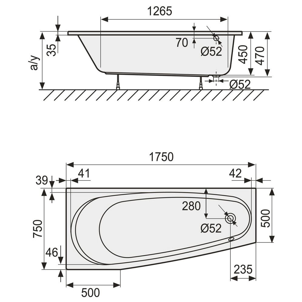 DUSCHOLUX Piccolo 173 Kleinraum-Badewanne Einbau Ecke links