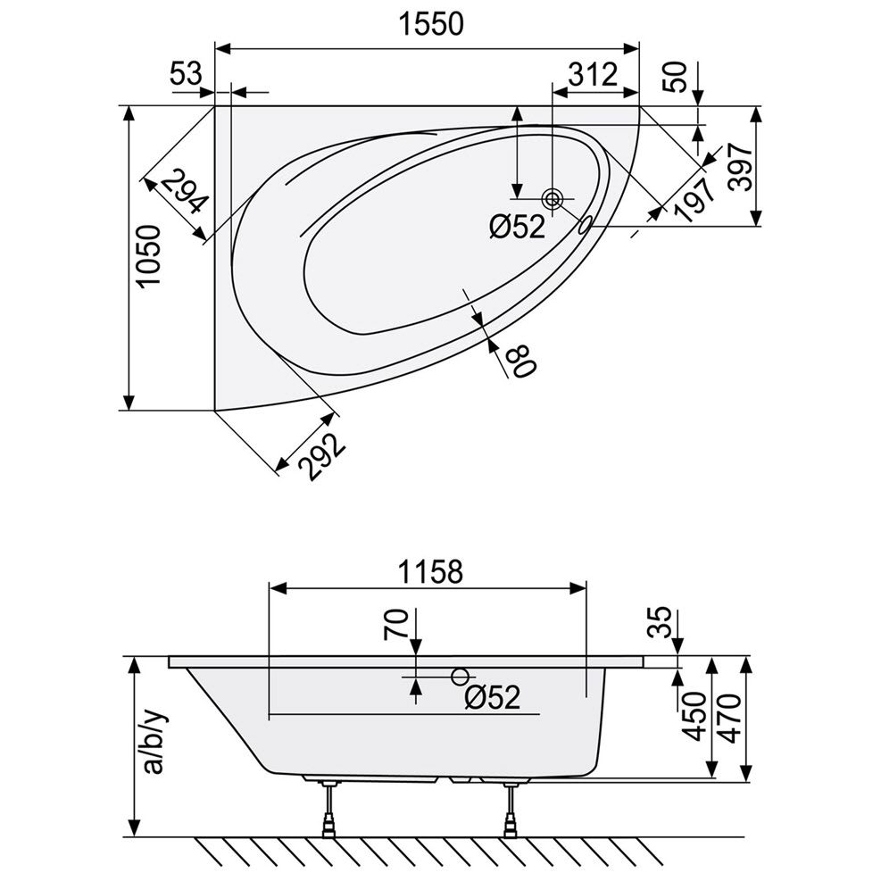 DUSCHOLUX Malaga 460 Raumsparwanne asymmetrisch links