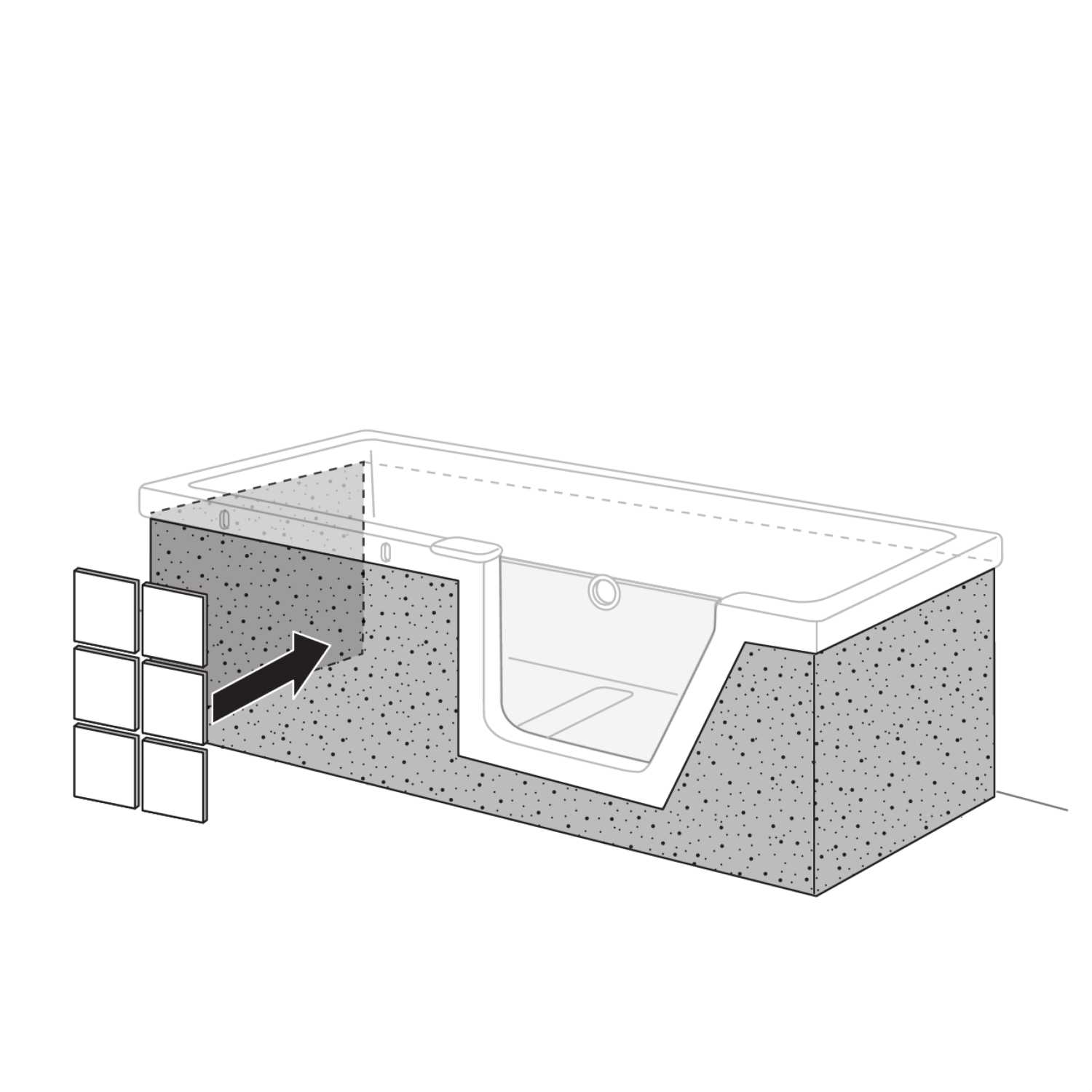 DUSCHOLUX Fliesenträger für Step-In Pure 170 x 75 cm Front-, Rücken-, Fußteil, Einstieg rechts