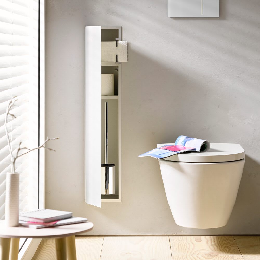 - mit Reserverollen-/ Feuchtpapierbox, Papierhalter und Toilettenbürstengarnitur.