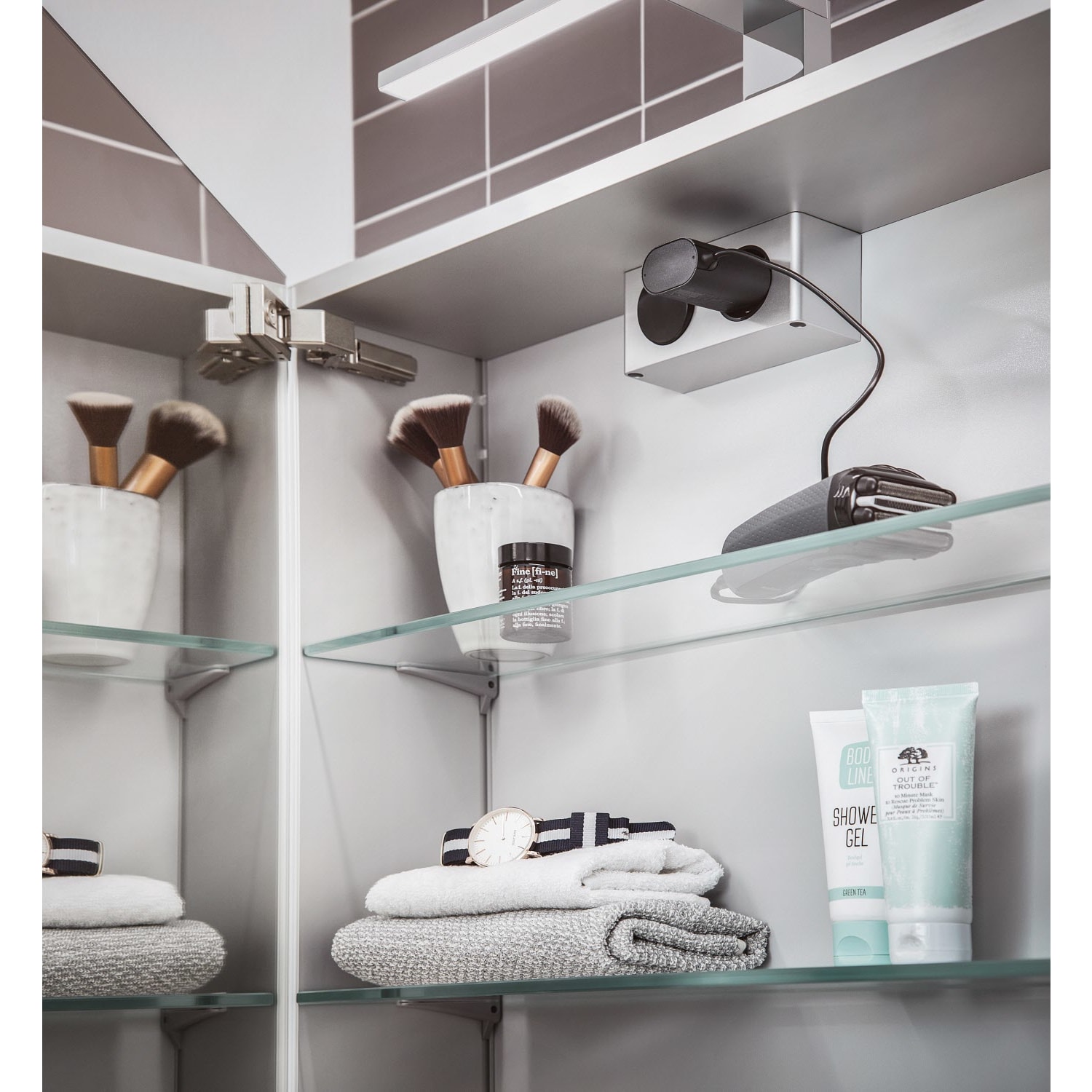 - 2 stufenlos einstellbare Ablagen aus Kristallglas