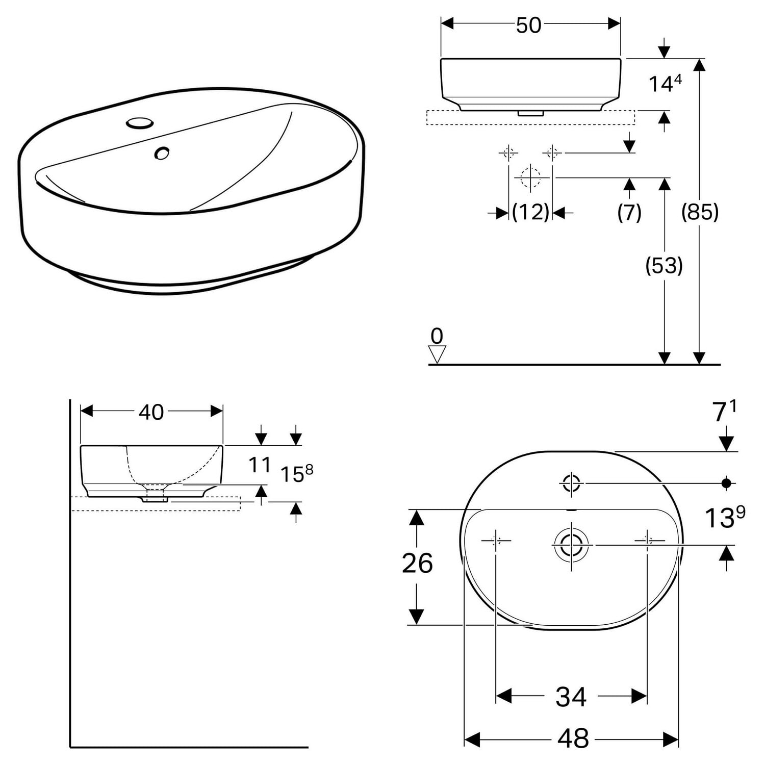 Geberit VariForm Aufsatzwaschtisch 50 x 40 cm, elliptisch, mit Hahnlochbank