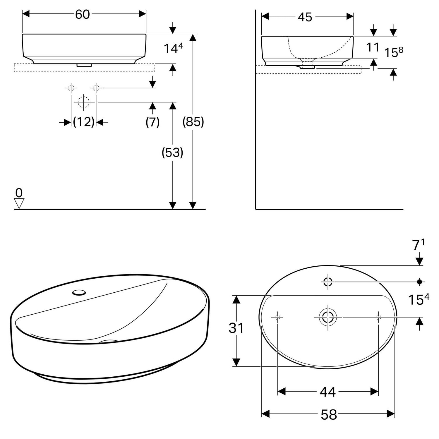 Geberit VariForm Aufsatzwaschtisch 60 x 45 cm, oval, mit Hahnlochbank