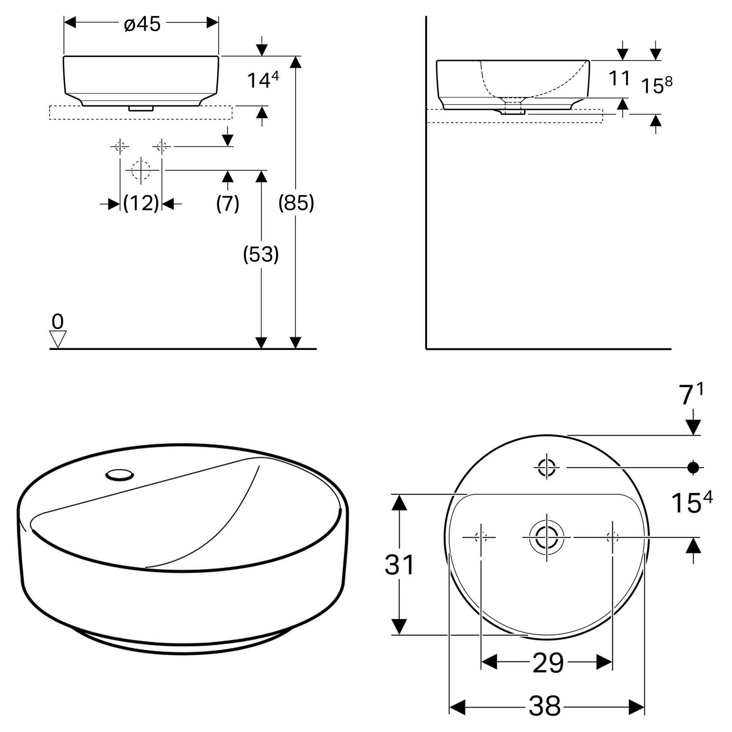Geberit VariForm Aufsatzwaschtisch, rund, mit Hahnlochbank