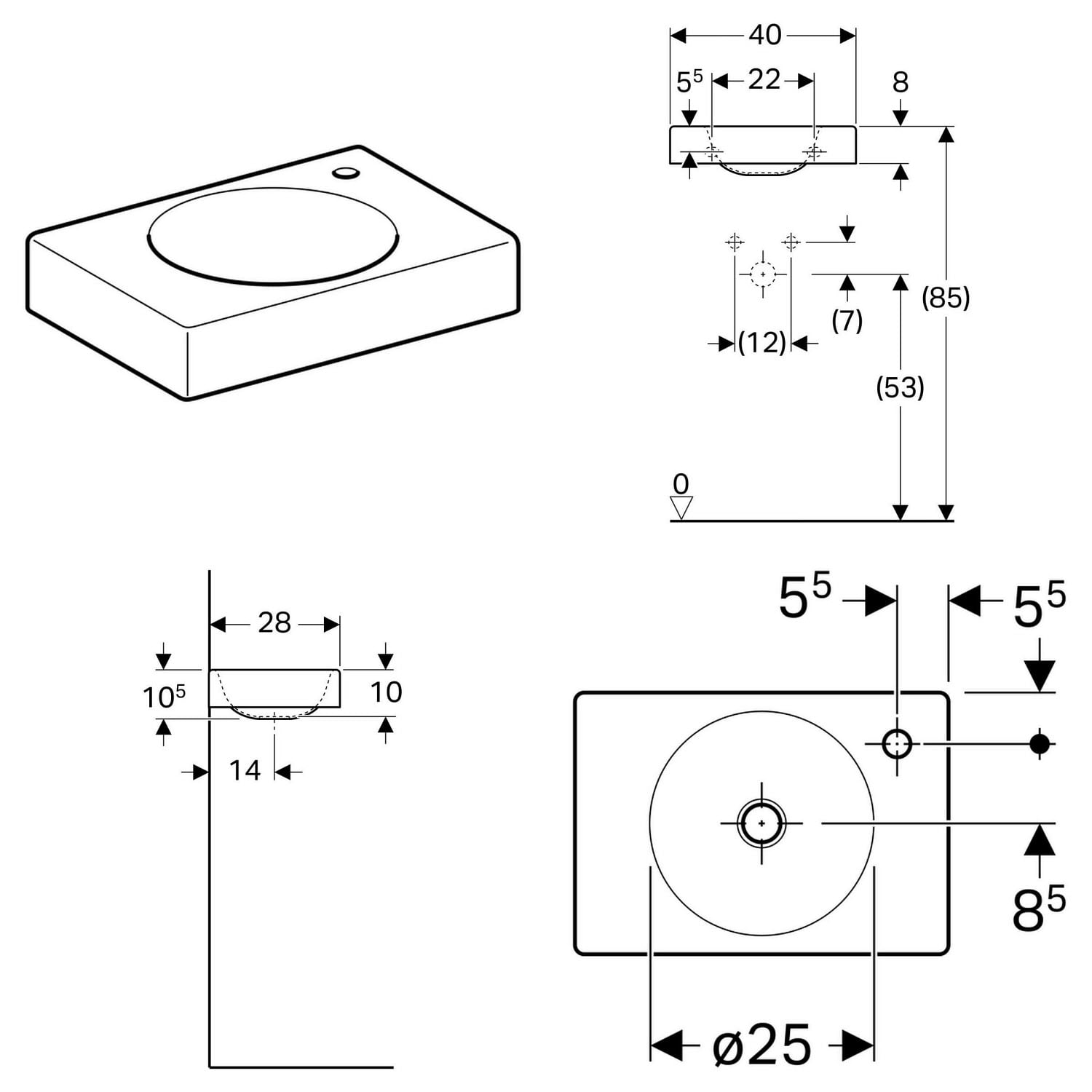 Geberit Preciosa II Handwaschbecken 40 x 28 cm mit Hahnloch