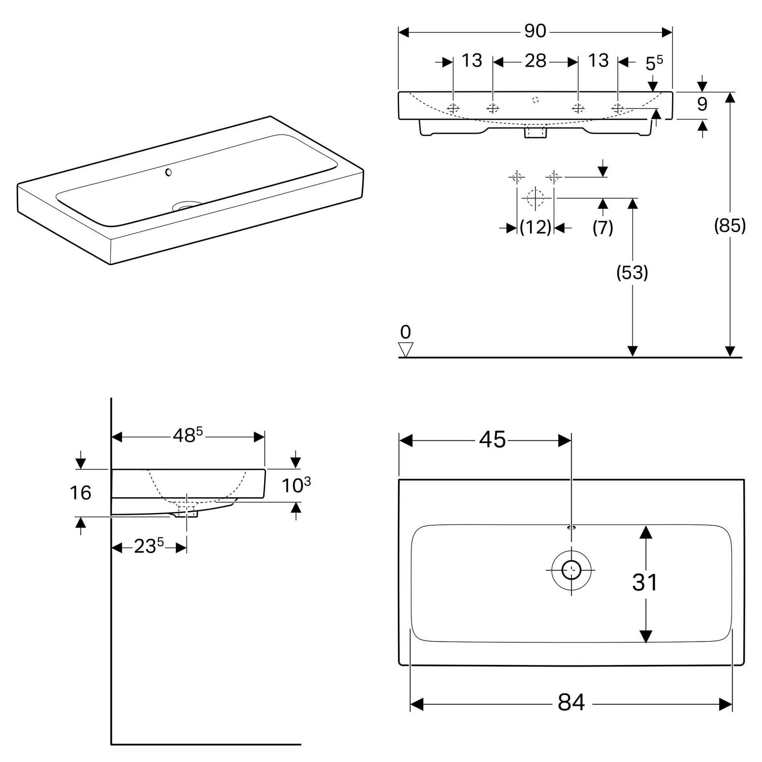 Geberit iCon Waschtisch 90 cm ohne Hahnloch