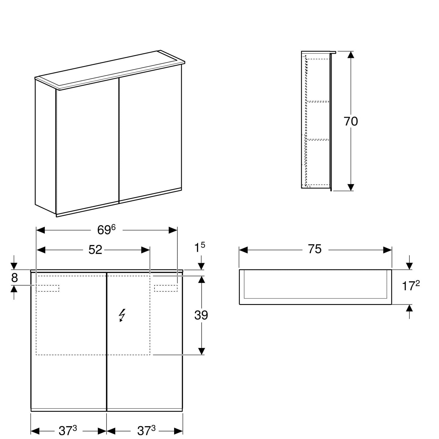 Geberit Option Spiegelschrank Plus mit Beleuchtung 75 cm