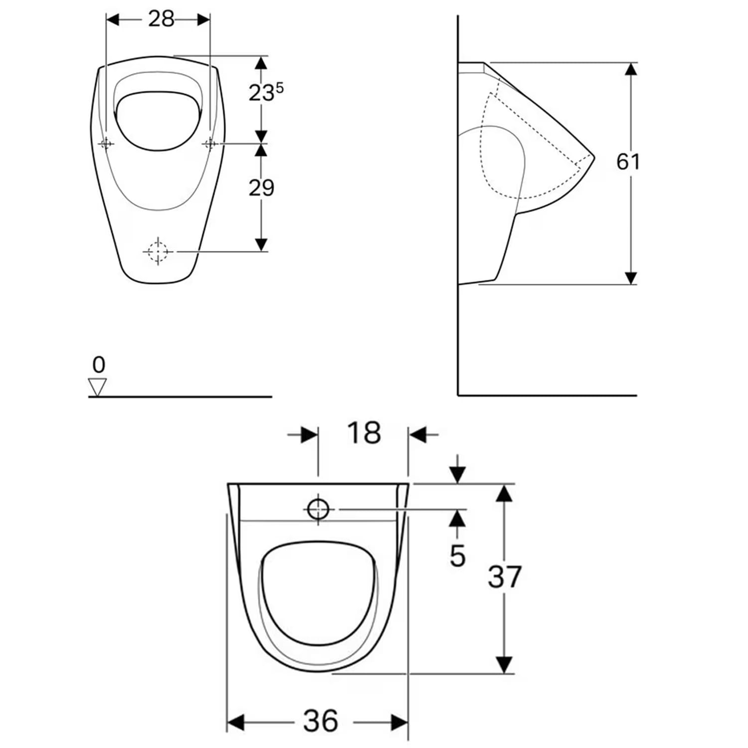 Geberit Renova Urinal, Zulauf von oben
