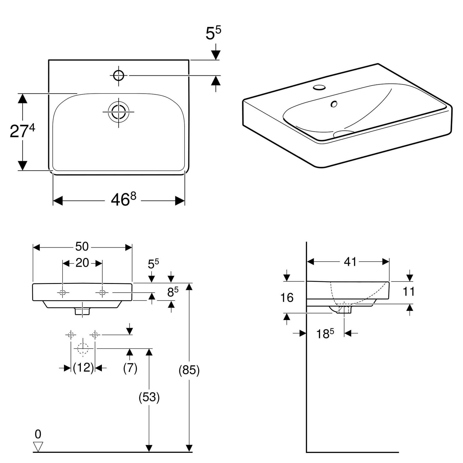 Geberit Smyle Square Handwaschbecken 50 cm, Überlauf asymetrisch