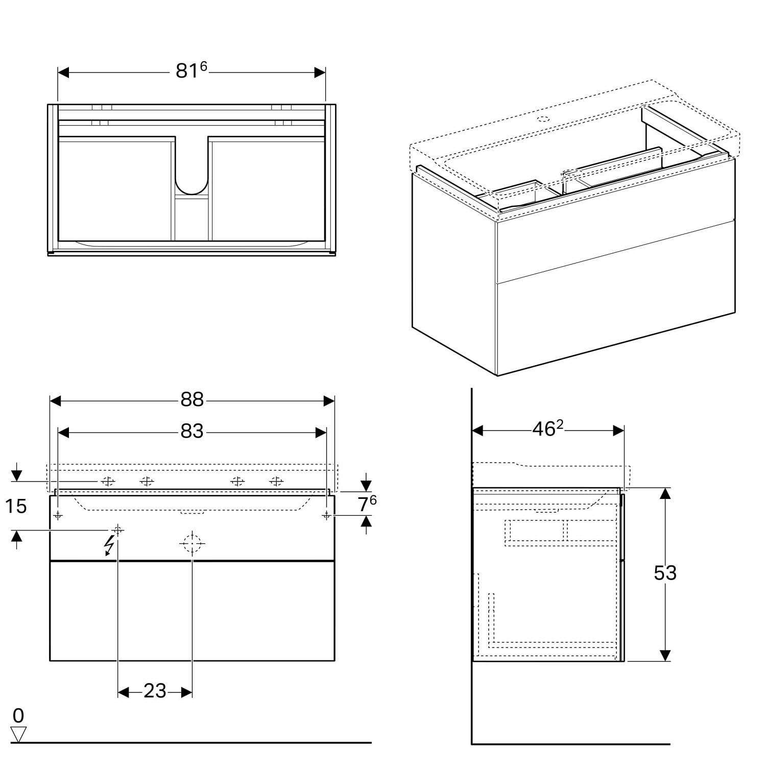 Geberit Xeno² Unterschrank für Waschtisch, mit zwei Schubladen, 88 cm