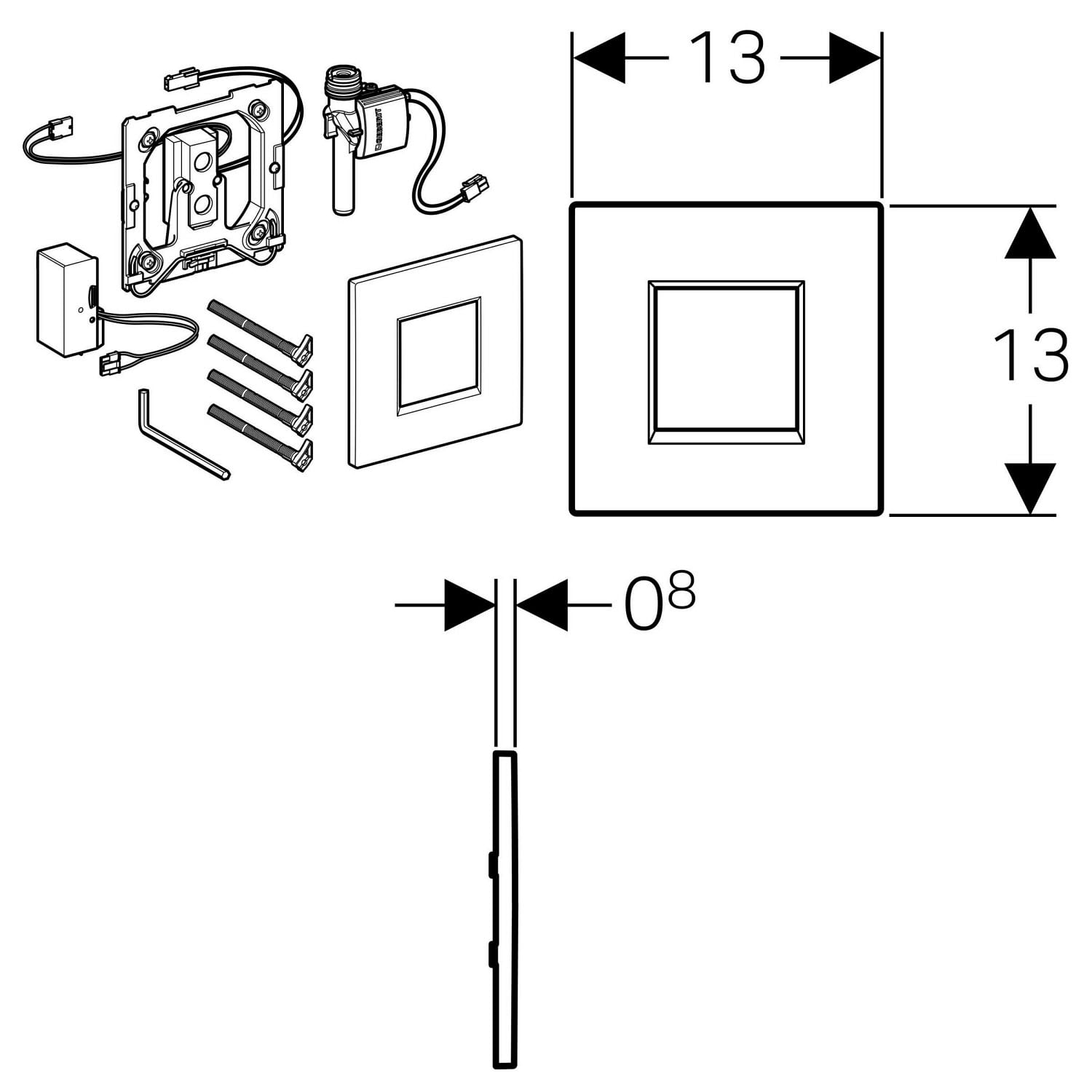 Geberit Urinalsteuerung mit elektronischer Spülauslösung, Netzbetrieb, Typ 20 square Abdeckplatte