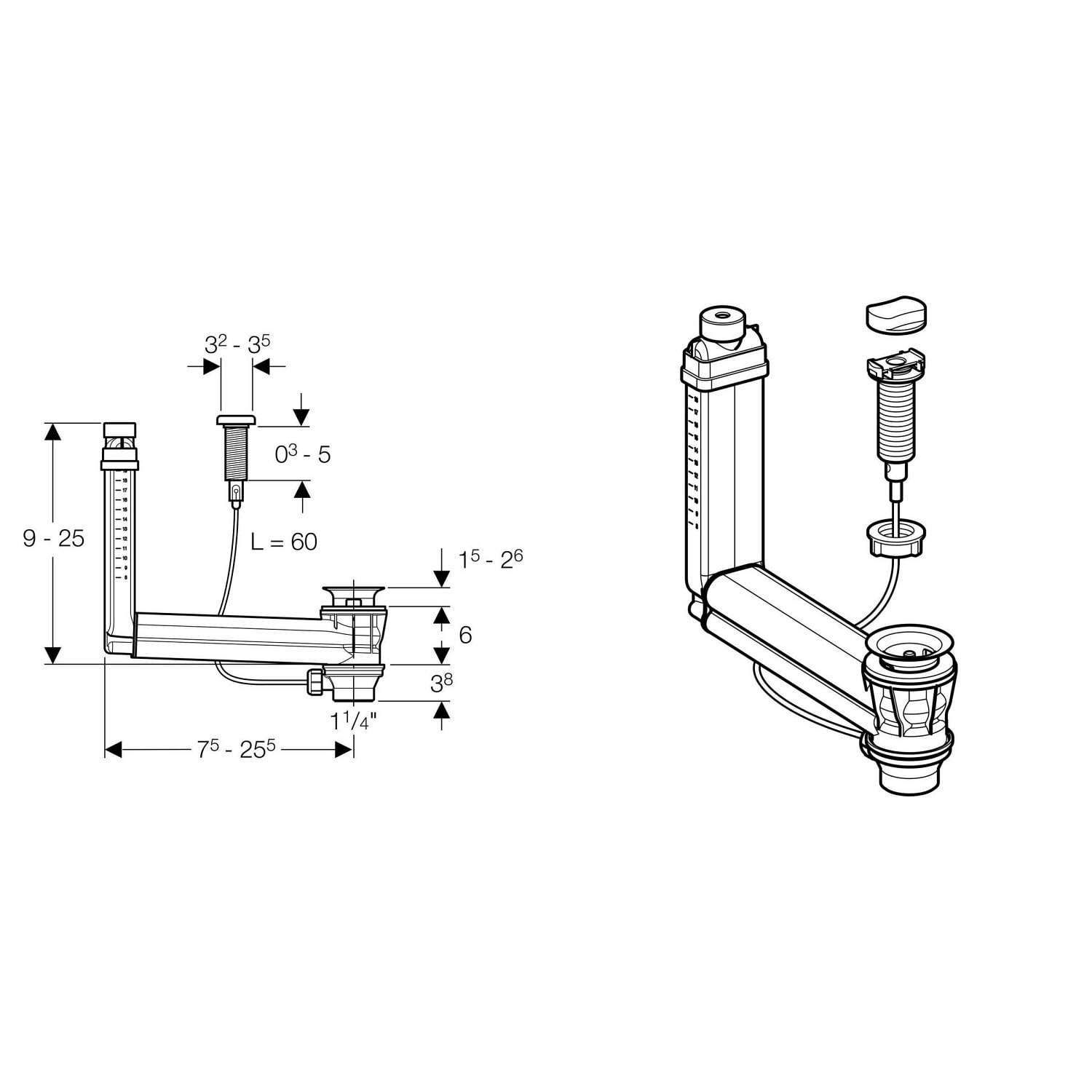 Geberit Ab- und Überlaufgarnitur Clou mit Kabelzug und Drehgriff