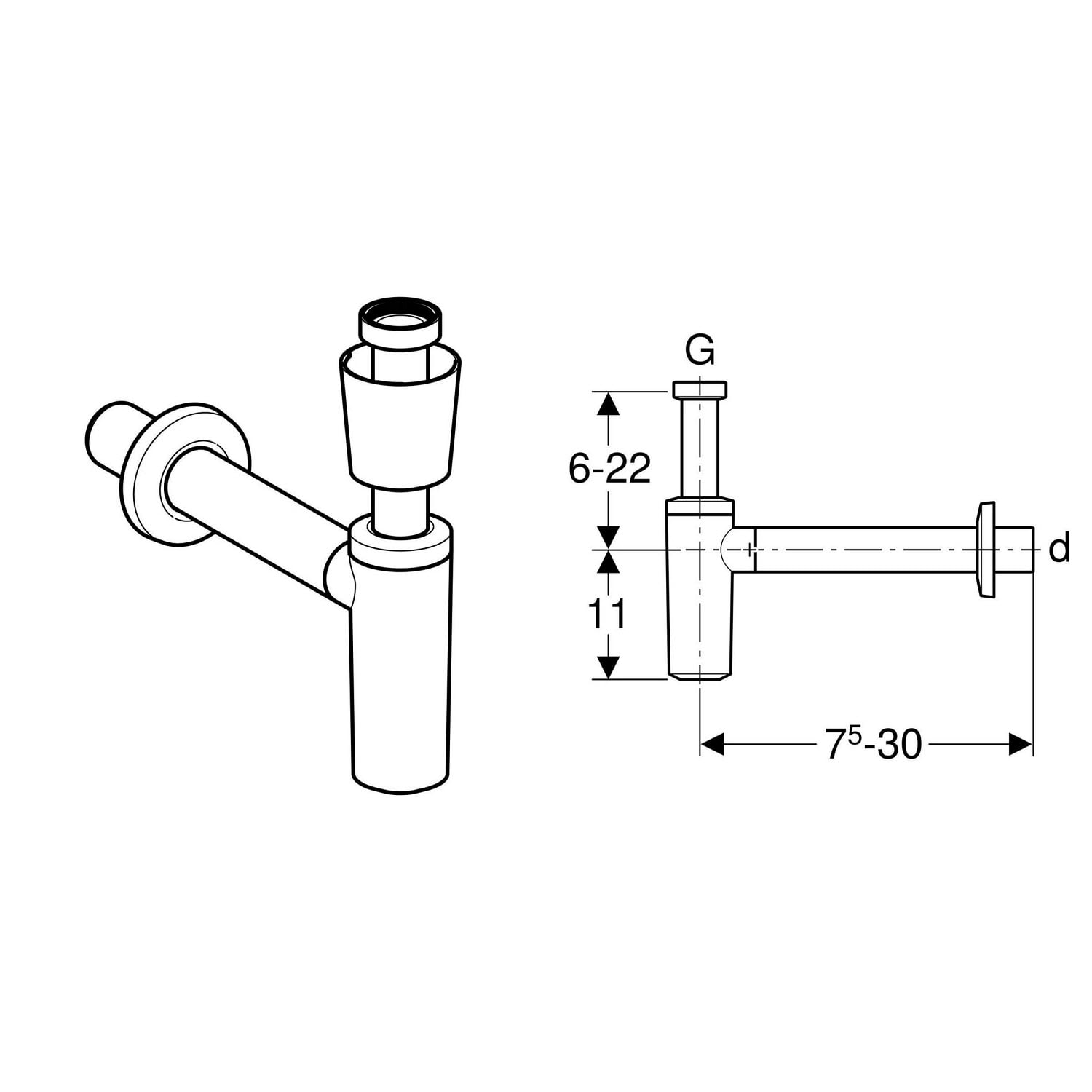 Geberit Tauchrohrgeruchsverschluss für Waschbecken Ø 4 cm, mit Ventilrosette, Abgang horizontal