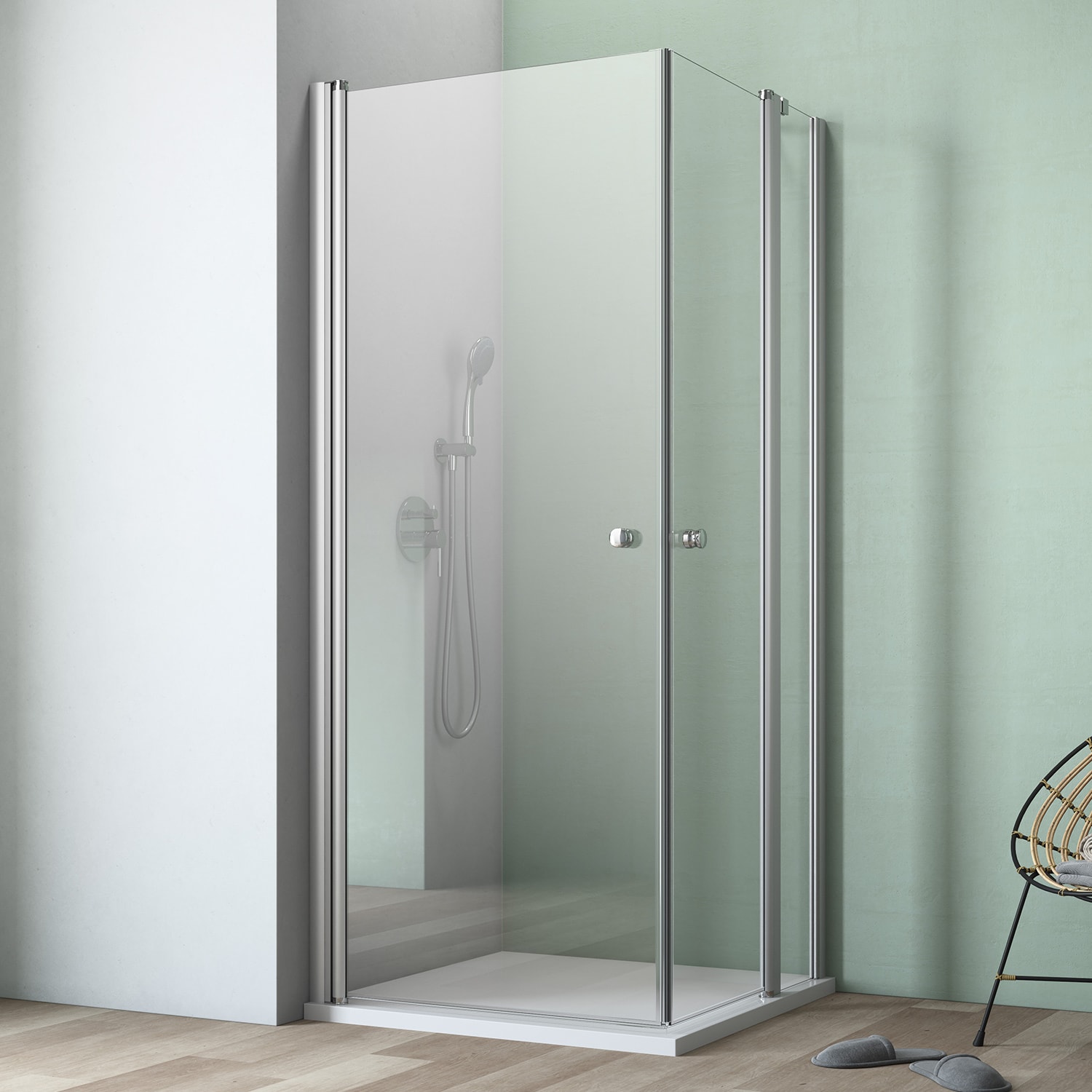 GEO maw flex Eckeinstieg 3-teilig mit Pendeltüren und Festteil rechts, 100 x 80 cm mit Glasbeschichtung