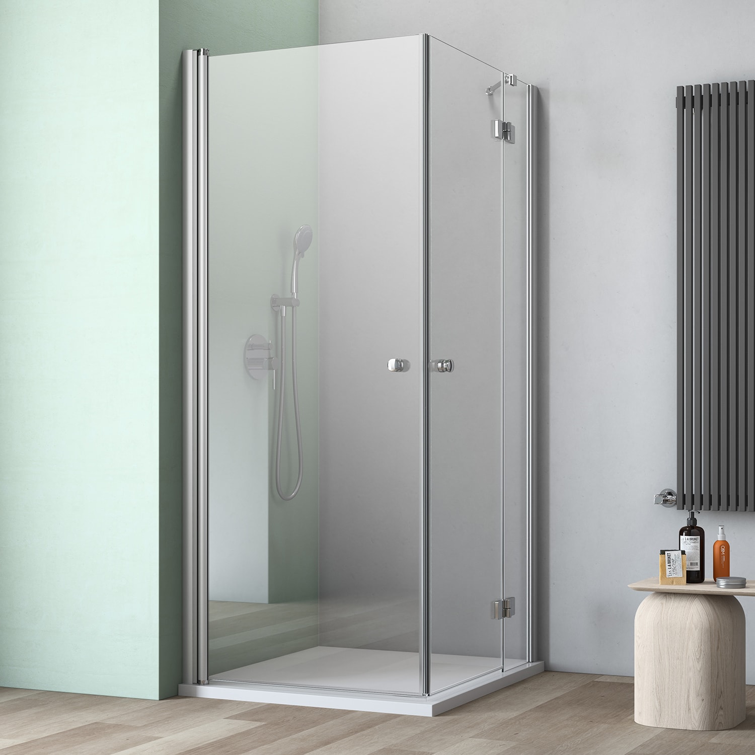 GEO maw flex Eckeinstieg 3-teilig mit 2 Türen und Festteil rechts, 100 x 80 cm