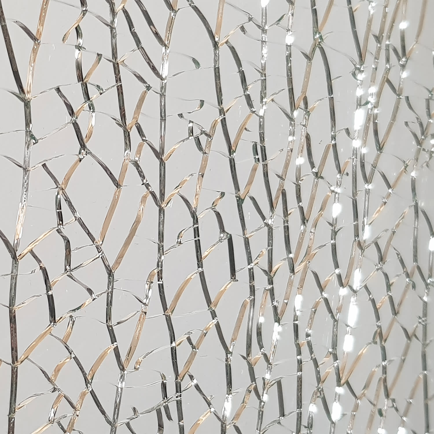 Jede Scheibe ist ein Unikat und weist einen unterschiedlichen Verlauf der Glasbruchstruktur auf. Die besondere Fertigung, durch Anschlag des mittleren Glases in Handarbeit, erzeugt den Bruch und damit die unverwechselbare Optik des Crash-Glases. Diese produktionsbedingten Anschlagstellen sind nicht vermeidbar und stellen auch keinen konstruktiven Mangel bzw. eine berechtigte Reklamation dar. Jede Scheibe ist somit ein echtes Unikat.