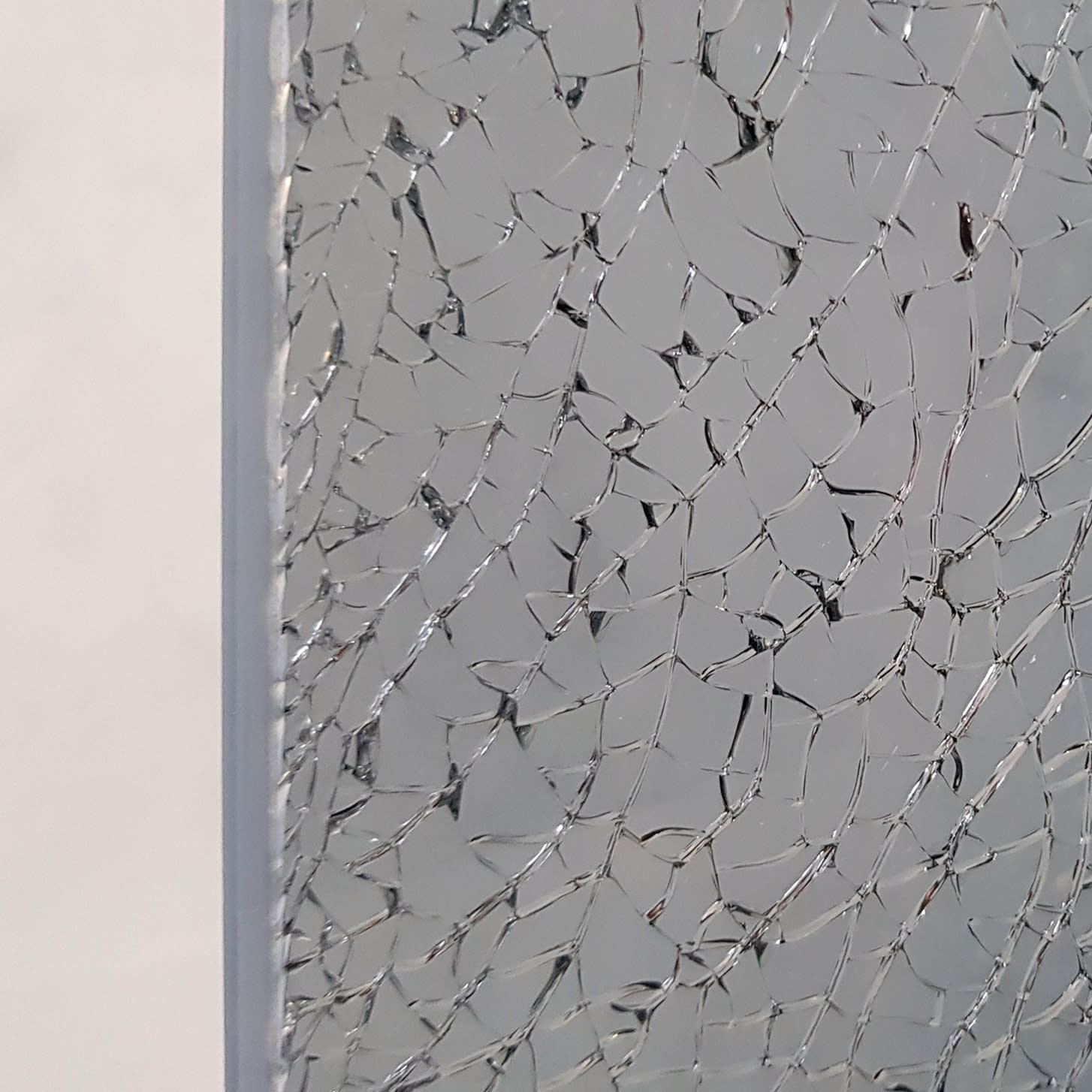 Jede Scheibe ist ein Unikat und weist einen unterschiedlichen Verlauf der Glasbruchstruktur auf. Die besondere Fertigung, durch Anschlag des mittleren Glases in Handarbeit, erzeugt den Bruch und damit die unverwechselbare Optik des Crash-Glases. Diese produktionsbedingten Anschlagstellen sind nicht vermeidbar und stellen auch keinen konstruktiven Mangel bzw. eine berechtigte Reklamation dar. Jede Scheibe ist somit ein echtes Unikat.