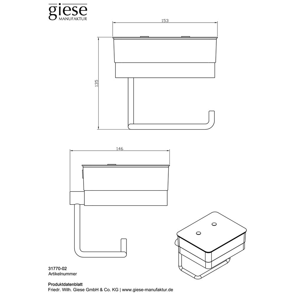 Giese von der Rolle WC-Duo Glasbehälter und Papierhalter, Wandmodell