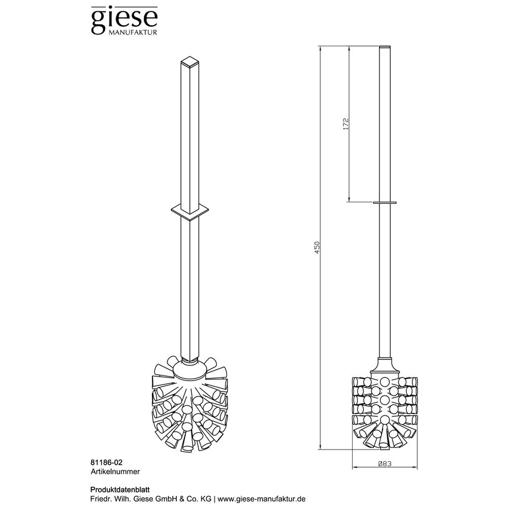 Giese Ersatz-WC-Bürste mit Stiel und Metallgewinde