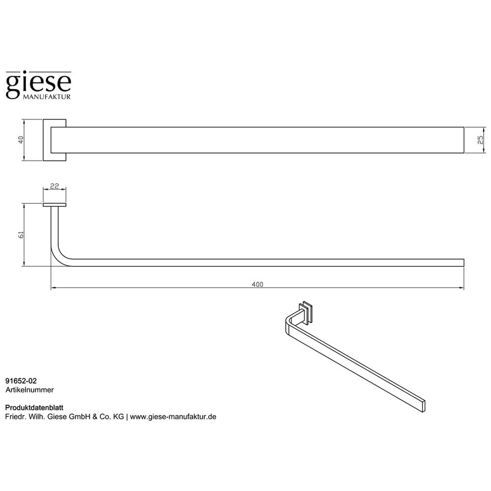 Giese Handtuchhalter 40 cm für Befestigung am Badmöbel