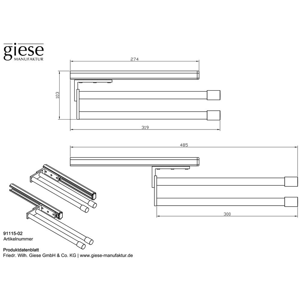 Giese Handtuchhalter doppelt 30 cm, ausziehbar