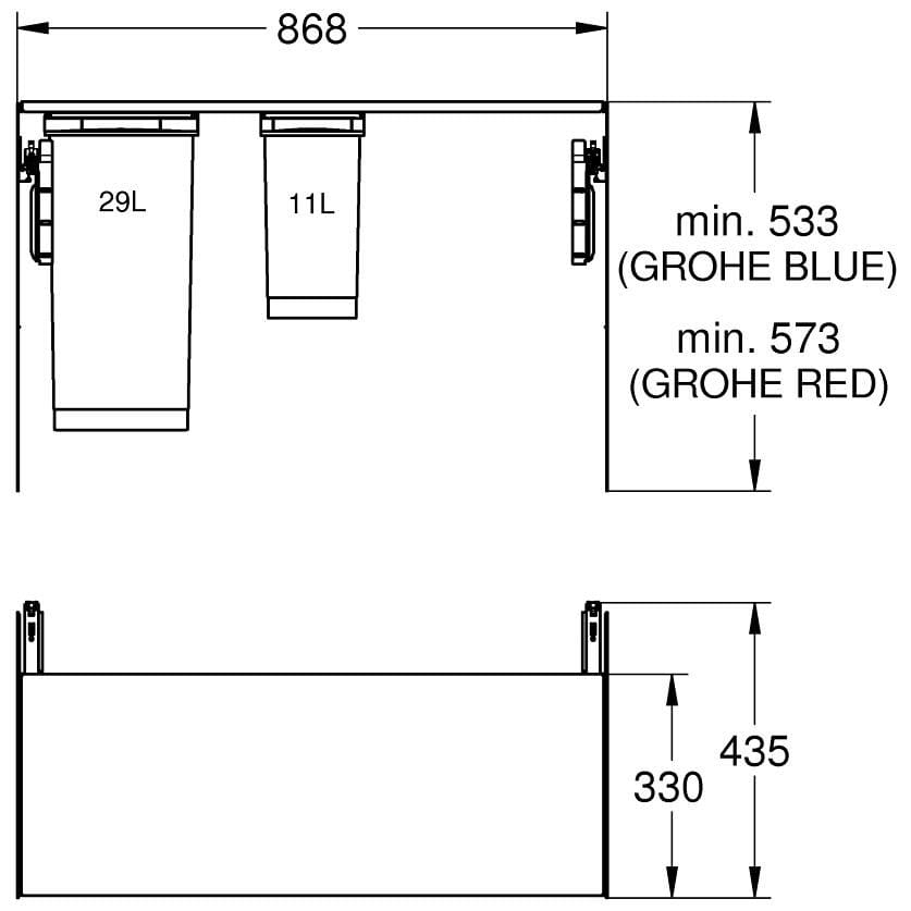 GROHE Blue Mülltrennsystem 90 cm - 11 l / 29 l