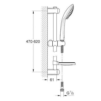 - GROHE QuickFix® (für verstellbare Distanz zwischen den Wandhaltern; Wandhalter aus Metall)