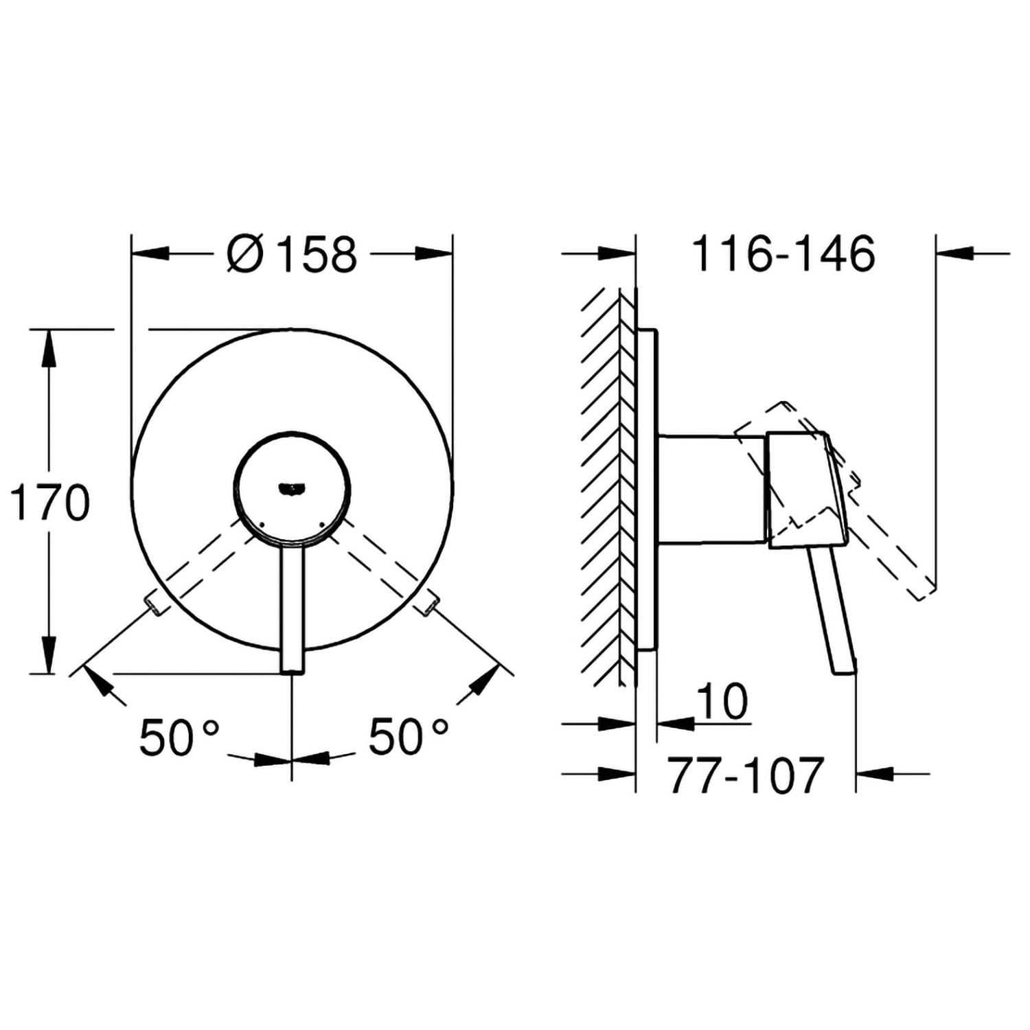 - GROHE StarLight OberflächeWandrosette mit GROHE QuickFix mit verdeckter Rosetten- und Schaftabdichtung, verdeckte Befestigung