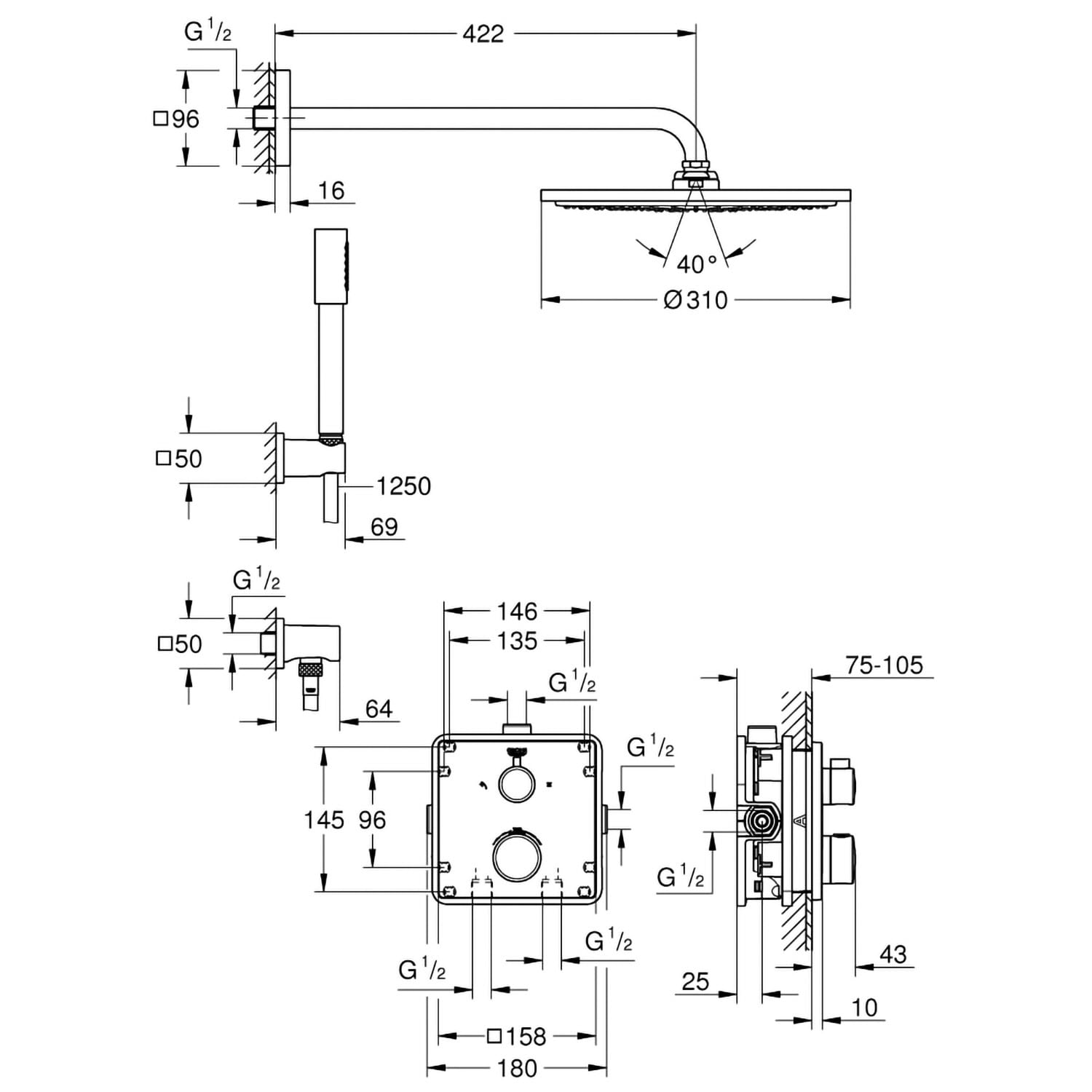 GROHE Grohtherm Duschsystem Unterputz mit Rainshower Cosmopolitan 310