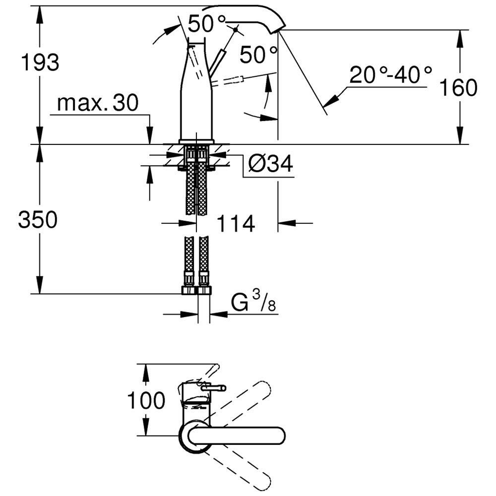 GROHE Essence New Einhand-Waschtischbatterie M-Size ohne Ablaufgarnitur