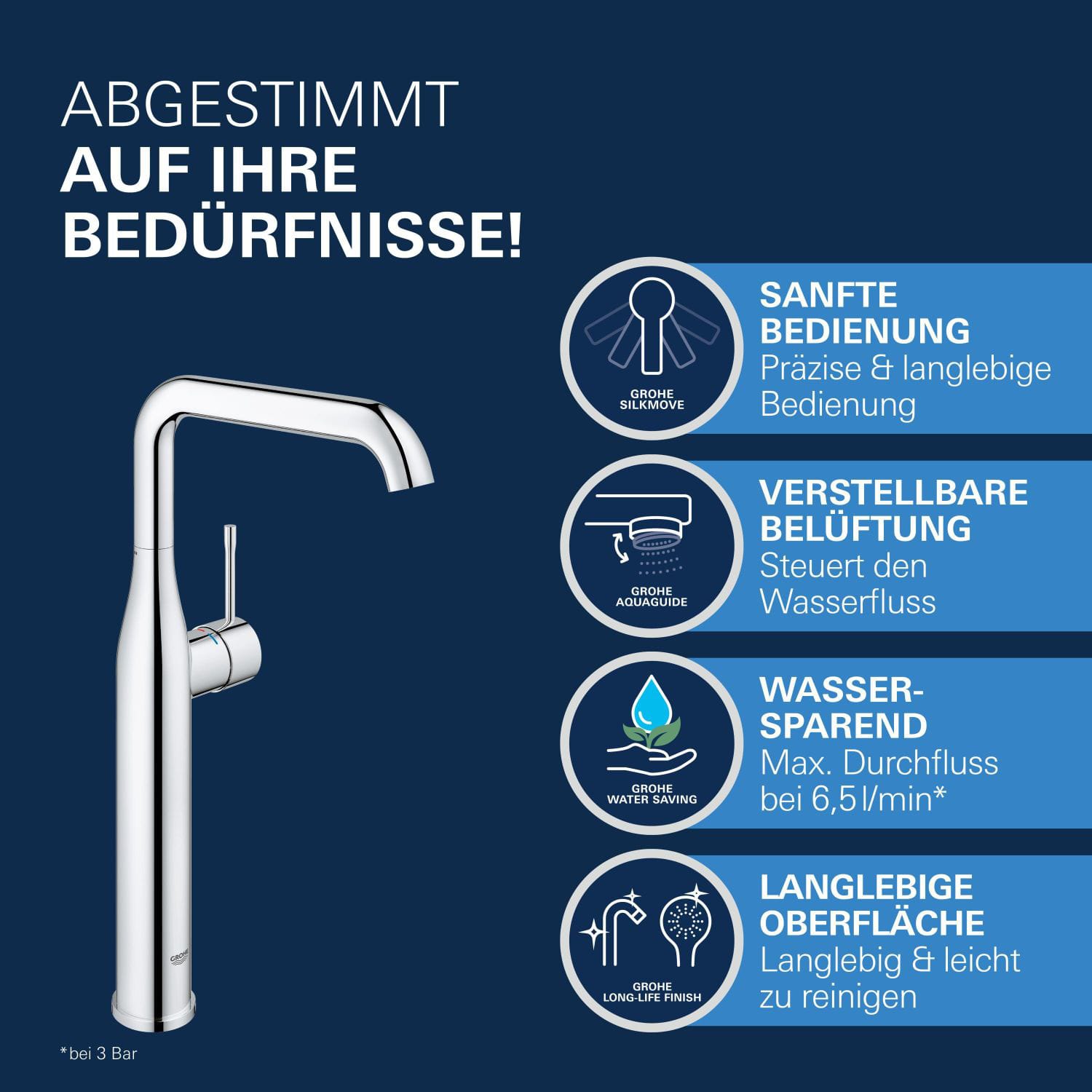 GROHE Essence Neu Einhand-Waschtischbatterie XL-Size für freistehende Waschschüsseln