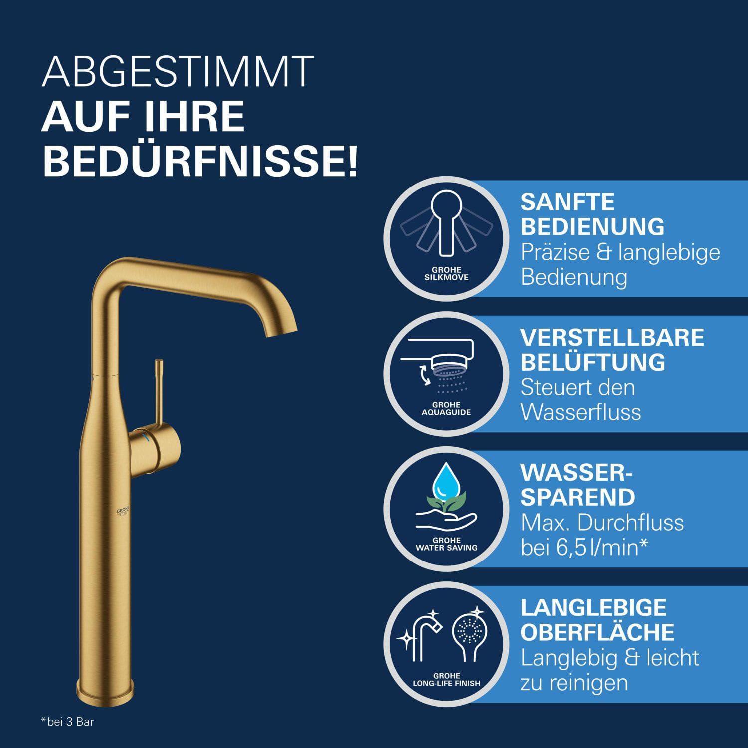 GROHE Essence New Einhand-Waschtischbatterie XL-Size für freistehende Waschschüsseln