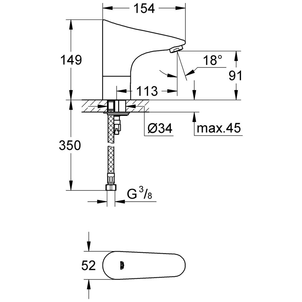 GROHE Europlus E Waschtischarmatur ohne Mischung mit Batterie-Stromversorgung