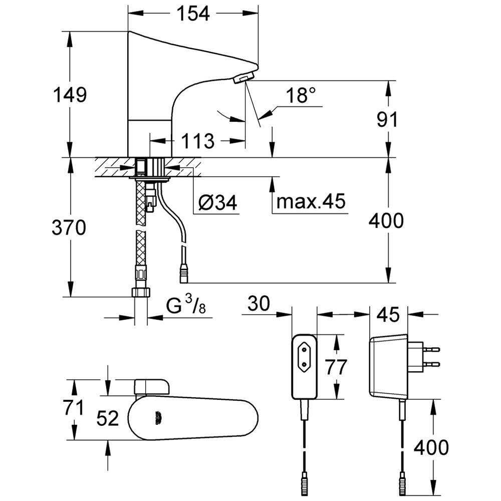 GROHE Europlus E Waschtischarmatur mit Mischeinrichtung und Steckertrafo