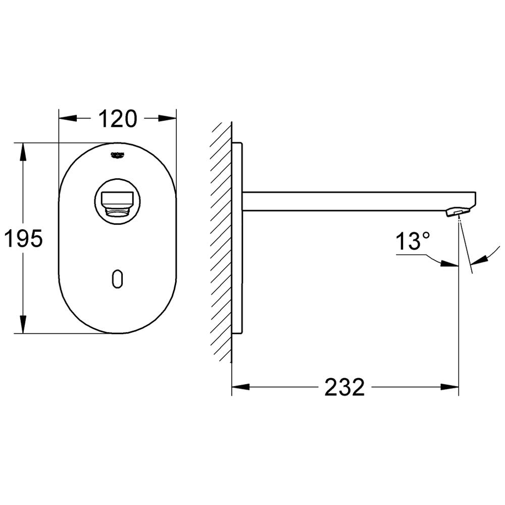 GROHE Eurosmart CE Infrarot-Waschtisch-Wandarmatur ohne Mischung, Ausladung 23 cm