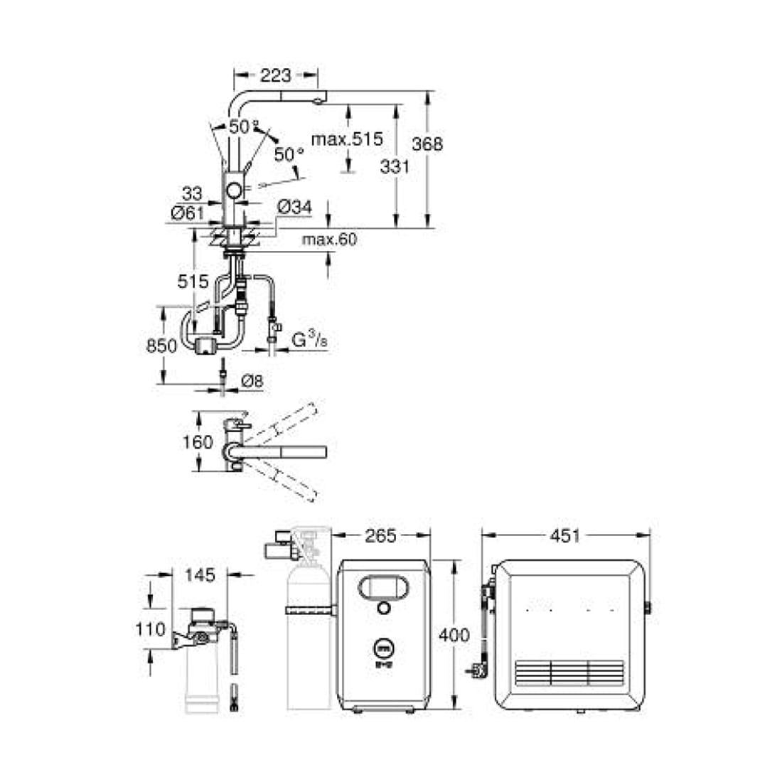 GROHE Blue Filter, CO2 Flasche und Reinigungskartusche sind nicht im Lieferumfang enthalten und müssen separat bestellt werden